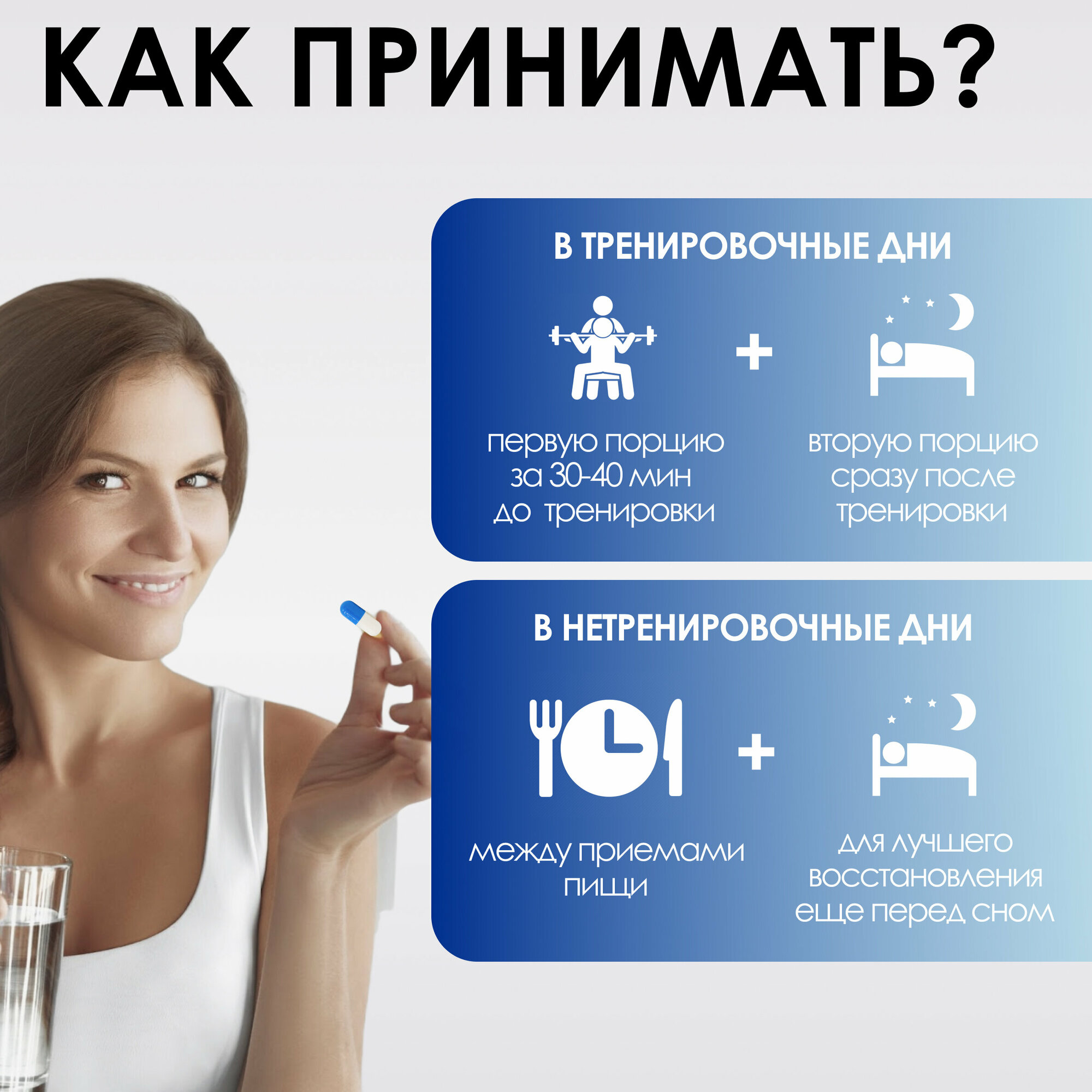 | Отзыв: | Беру уже не первый раз, но дозировка маленькая. Пью перед тренировкой 5 капсул, после тренировки 5 капсул, и вечером на ночь пью ещё 3 капсулы |