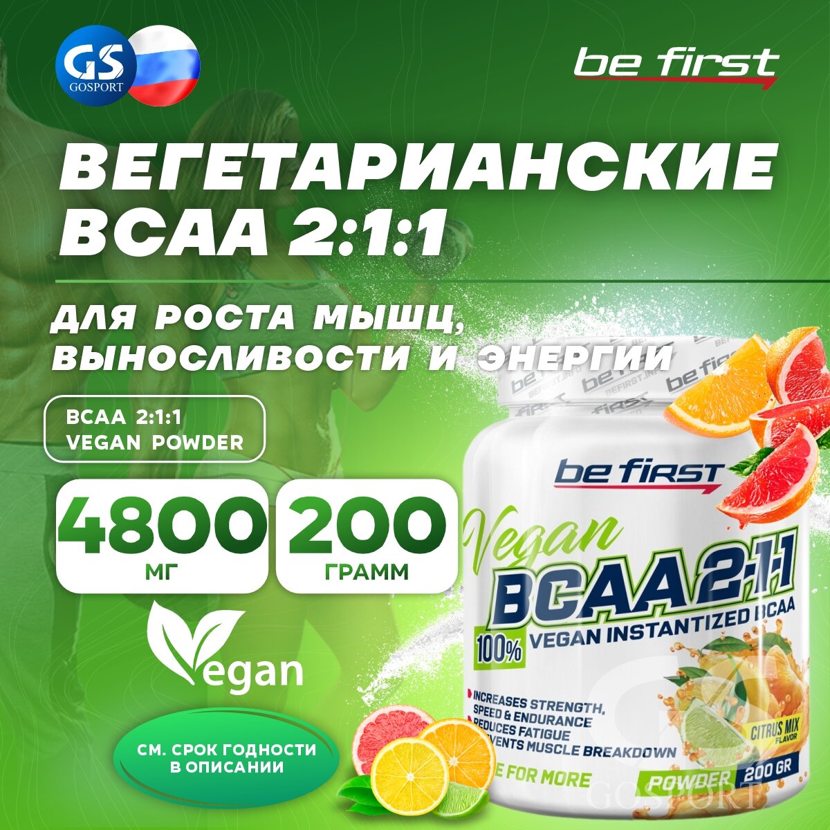 Be First BCAA 2:1:1 VEGAN, 200 г, вкус: цитрусовый микс