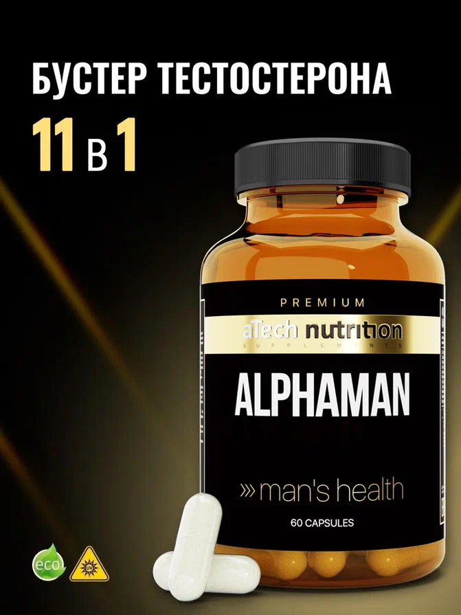 Комплекс ALPHAMAN aTech Nutrition Premium, для повышения тестостерона, БАД, 60 капсул