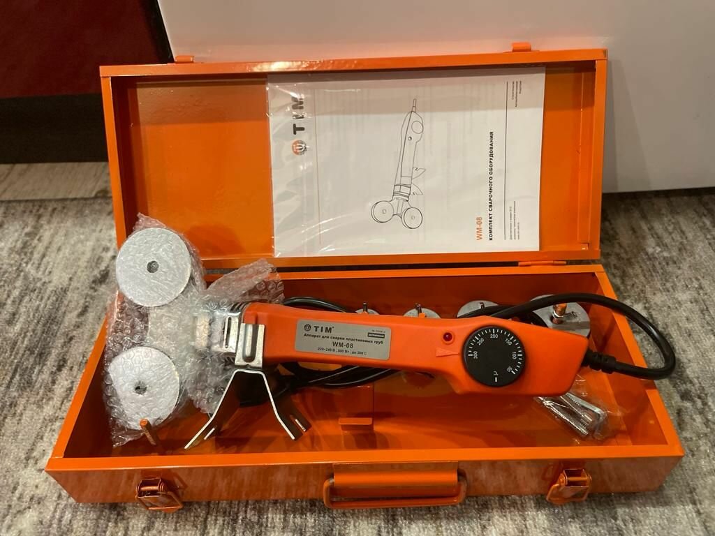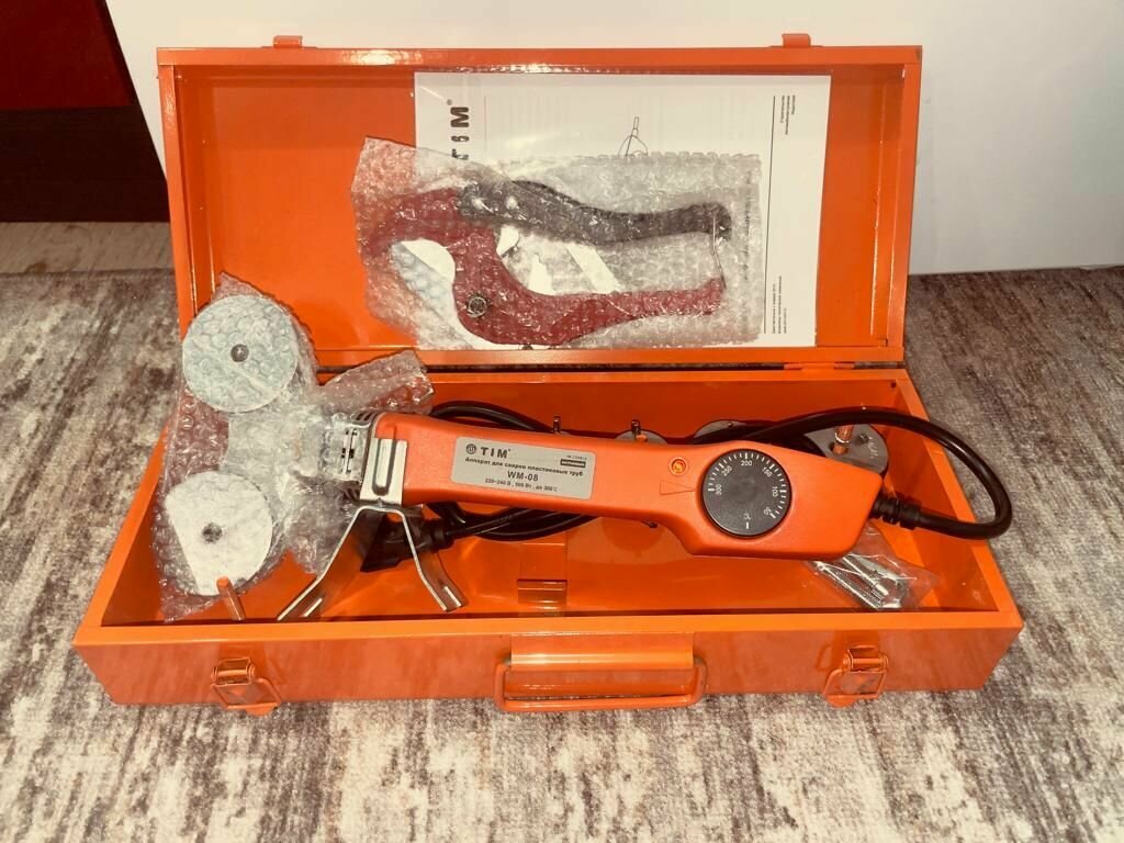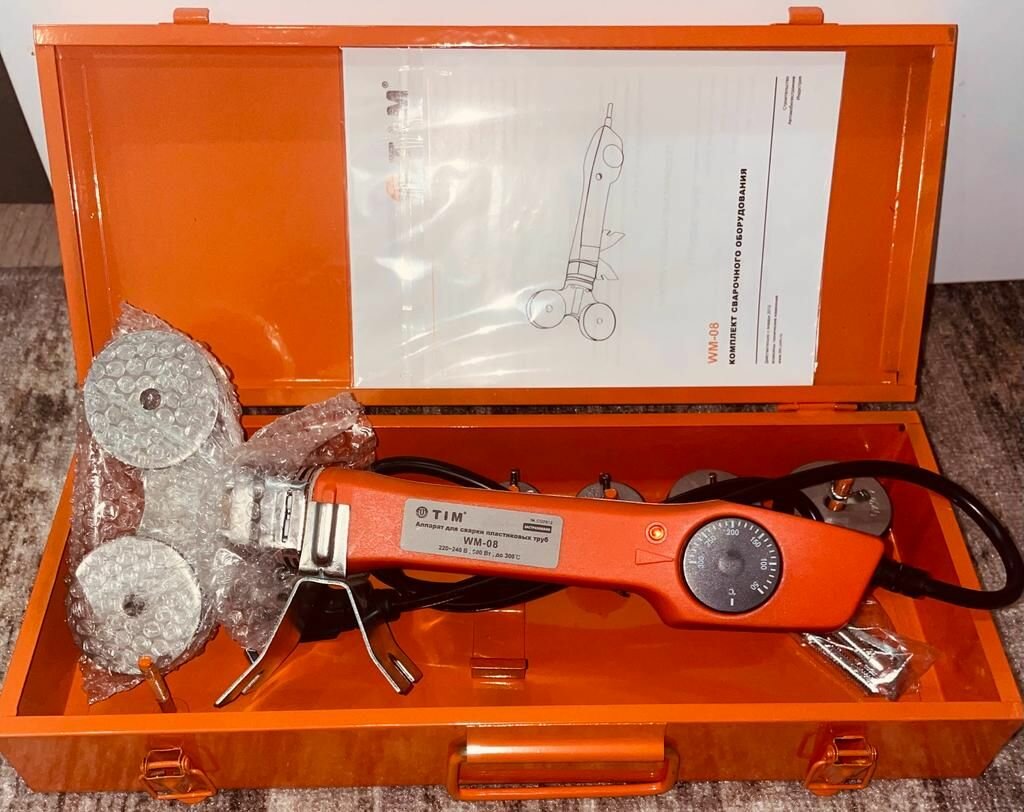 | Дополнительная информация | Комплект Аппарата для сварки пластиковых труб TIM WM-08: ножницы, шестигранный ключ, отвертка, винты. |