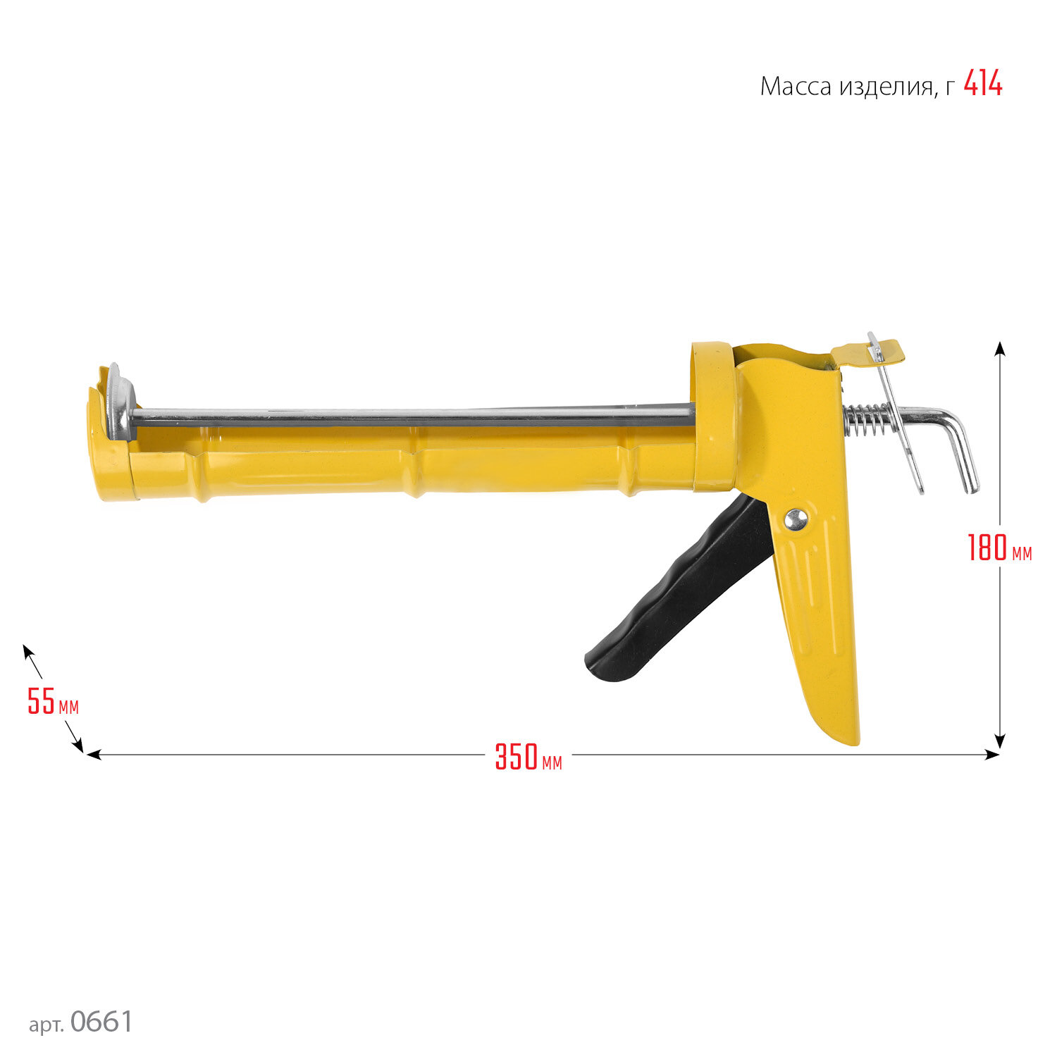 Пистолет для герметика полукорпусной, зубчатый шток, 310мл 0661
