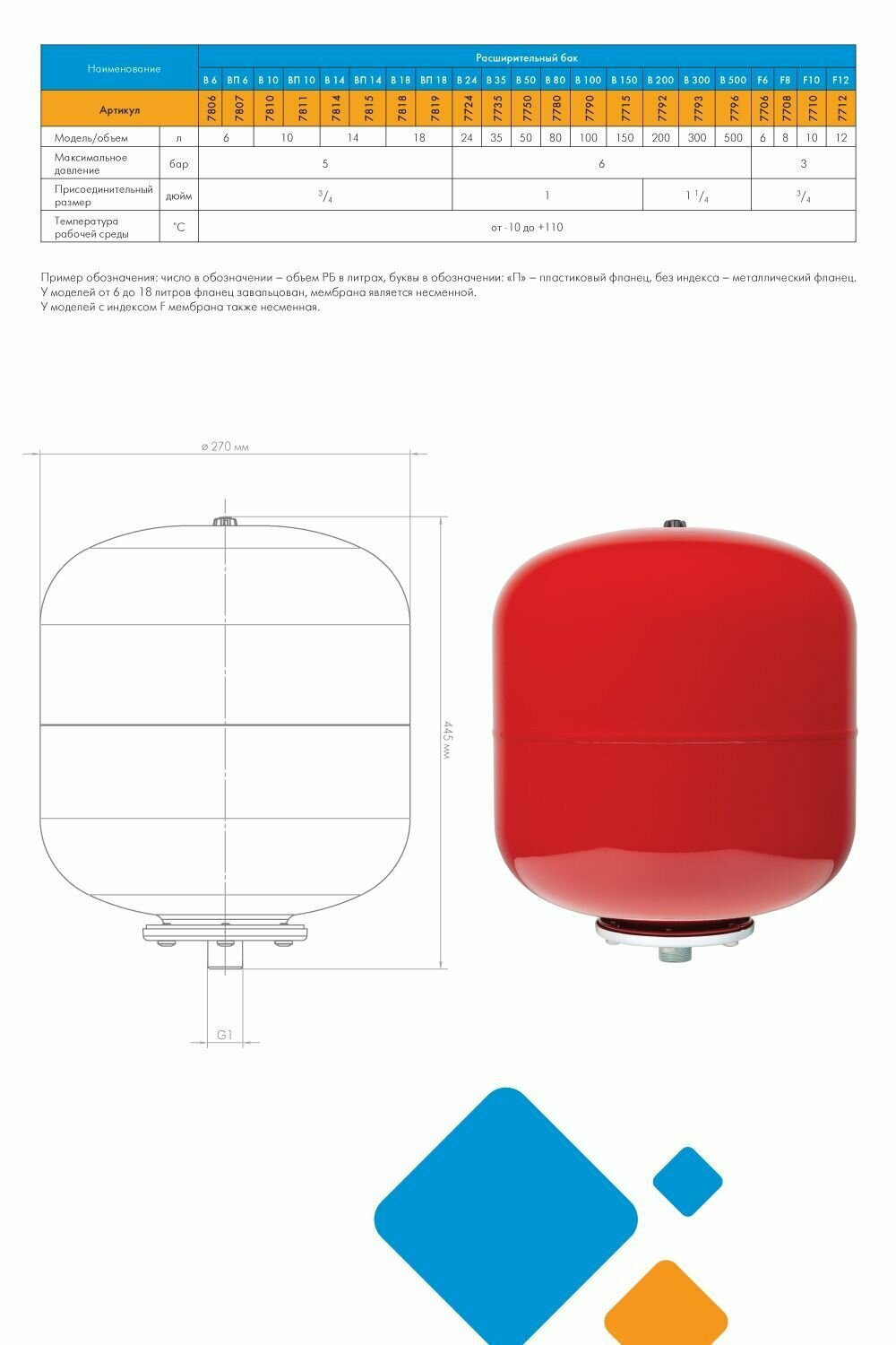 | Дополнительная информация | эластичная мембрана изготовлена из EPDM, снабжен воздушным клапаном (ниппелем) с пластиковым колпачком, для контроля и изменения давления |