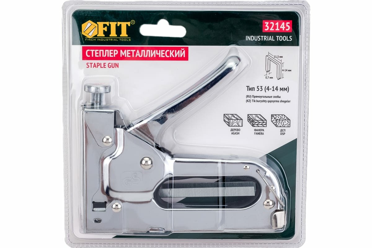 Степлер для скоб "тип 53" 4-14 мм, с регулировкой силы удара, метал. корпус FIT 32145
