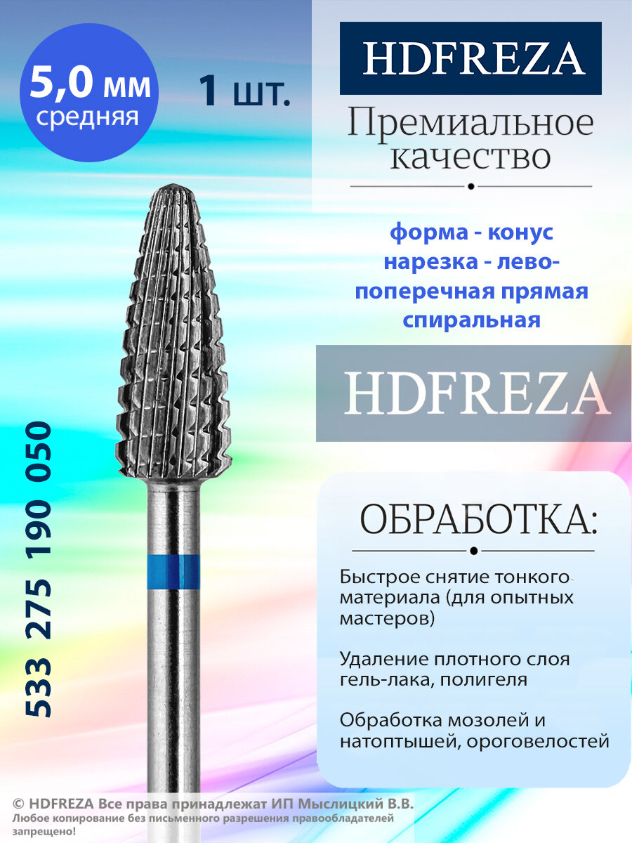 Фреза для маникюра и педикюра HDFREZA твердосплавная для снятия покрытия 533 275 190 050 Средняя МП конус