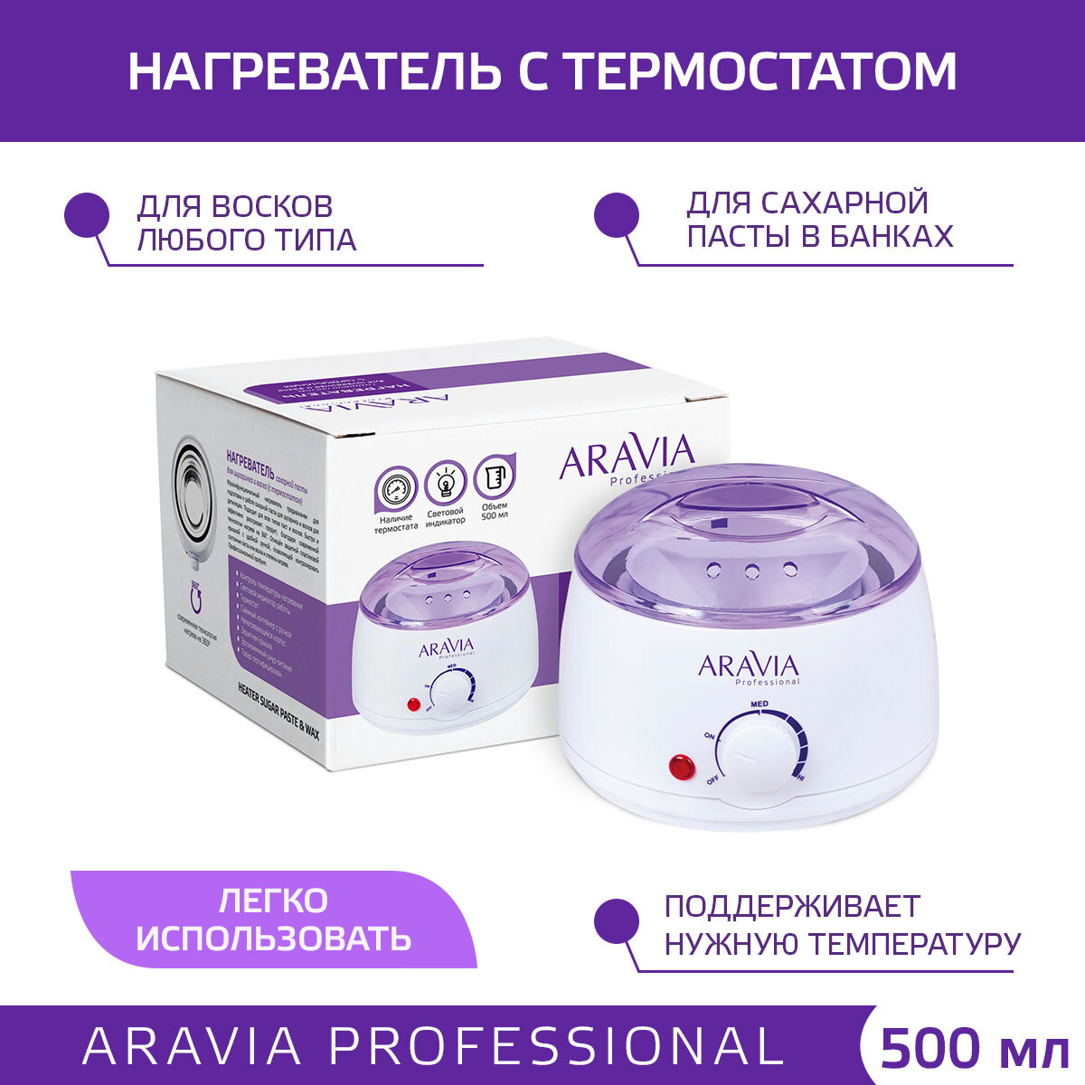 Купить ARAVIA PROFESSIONAL Аксессуары Нагреватель с термостатом (воскоплав) 500 мл сахарная паста и воск, 1 шт