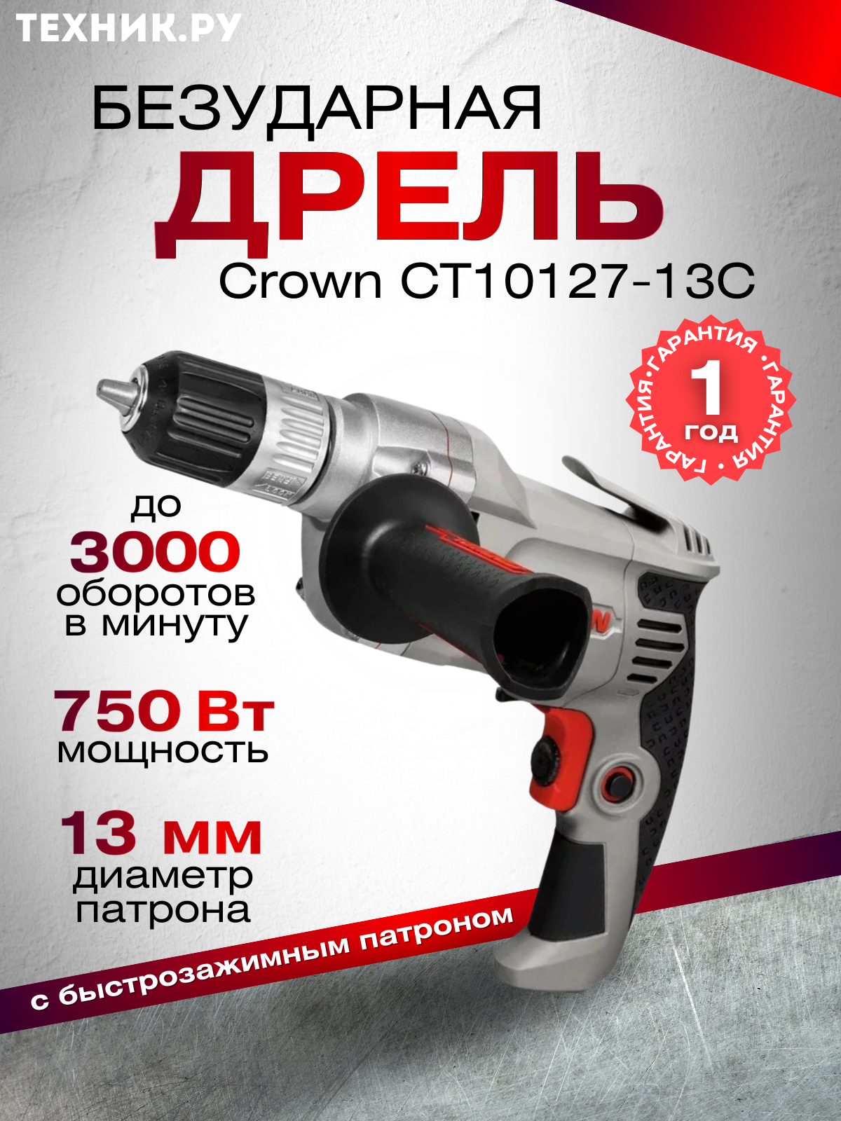 СохранитьБезударная дрель Crown CT10127-13C интересное: