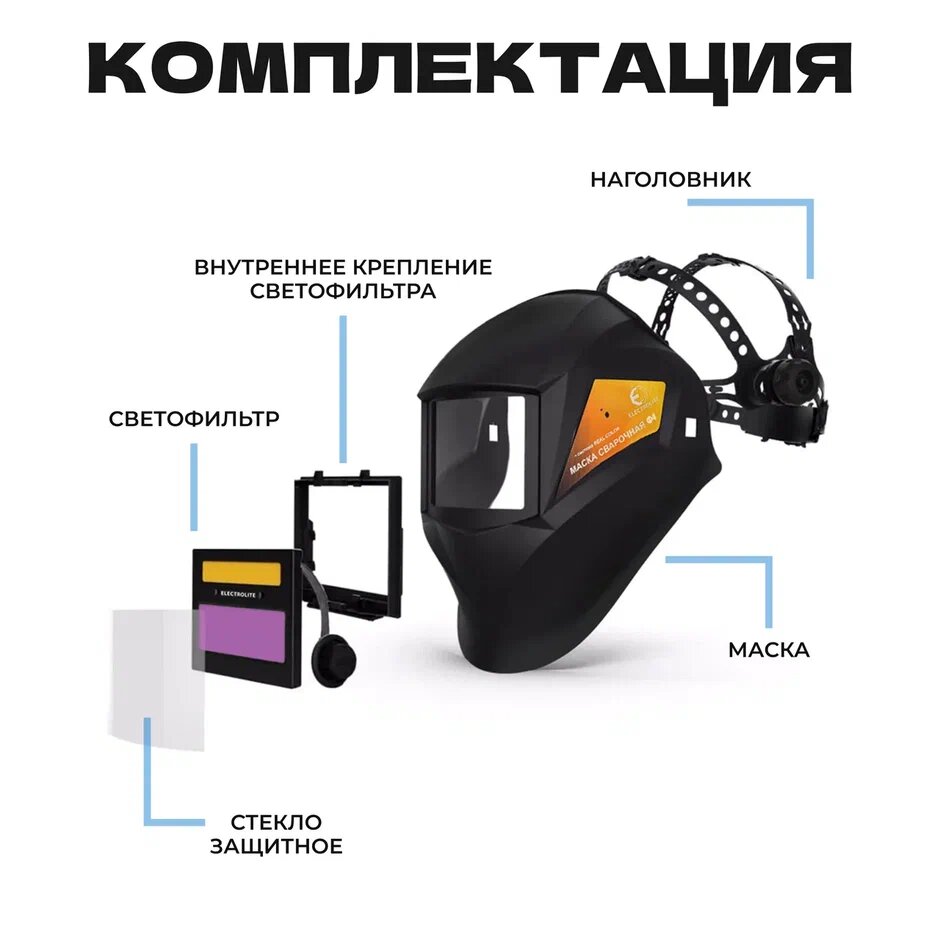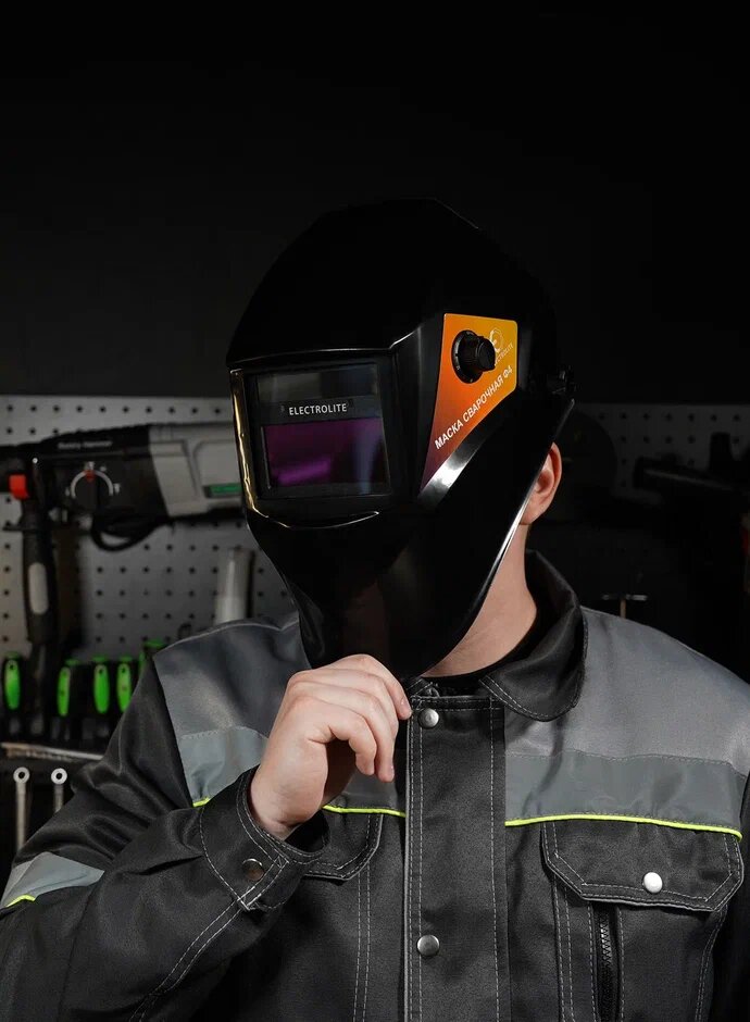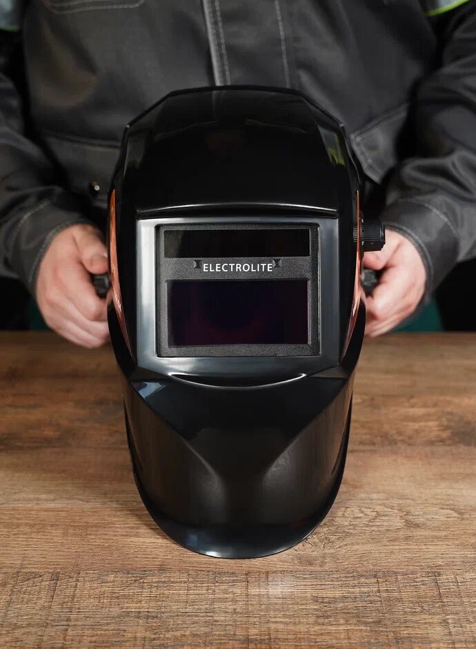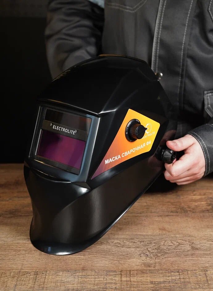 Маска сварочная хамелеон / маска сварщика ELECTROLITE Ф4 (9 DIN -13 DIN, смотровое окно 90*35 мм, ударопрочный пластик, автоматическое затемнение, солнечная батарея + АКБ) интересное: