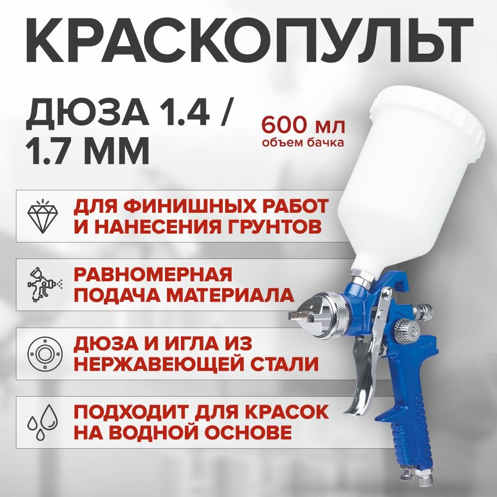 Краскопульт пневматический профессиональный REMIX HVLP H-827, дюза 1,4/ 1,7 + бачок 600 мл / набор в блистере