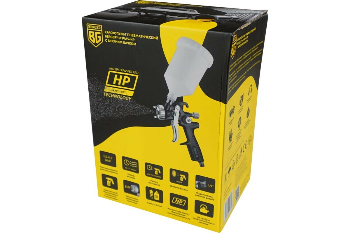 Краскопульт пневматический Berger «грау» HP 1.5 мм верхний бачок BG1368