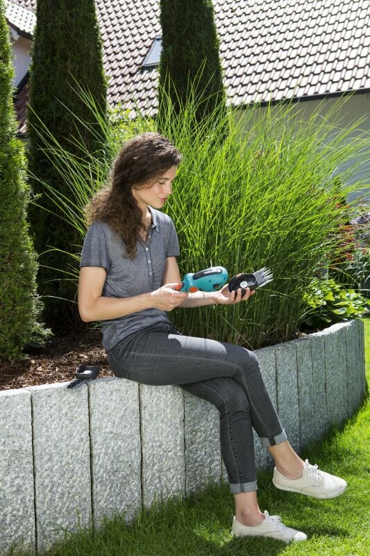 | Комплектация | ножницы, нож для травы, чехол для ножа, встроенный аккумулятор, зарядное устройство |