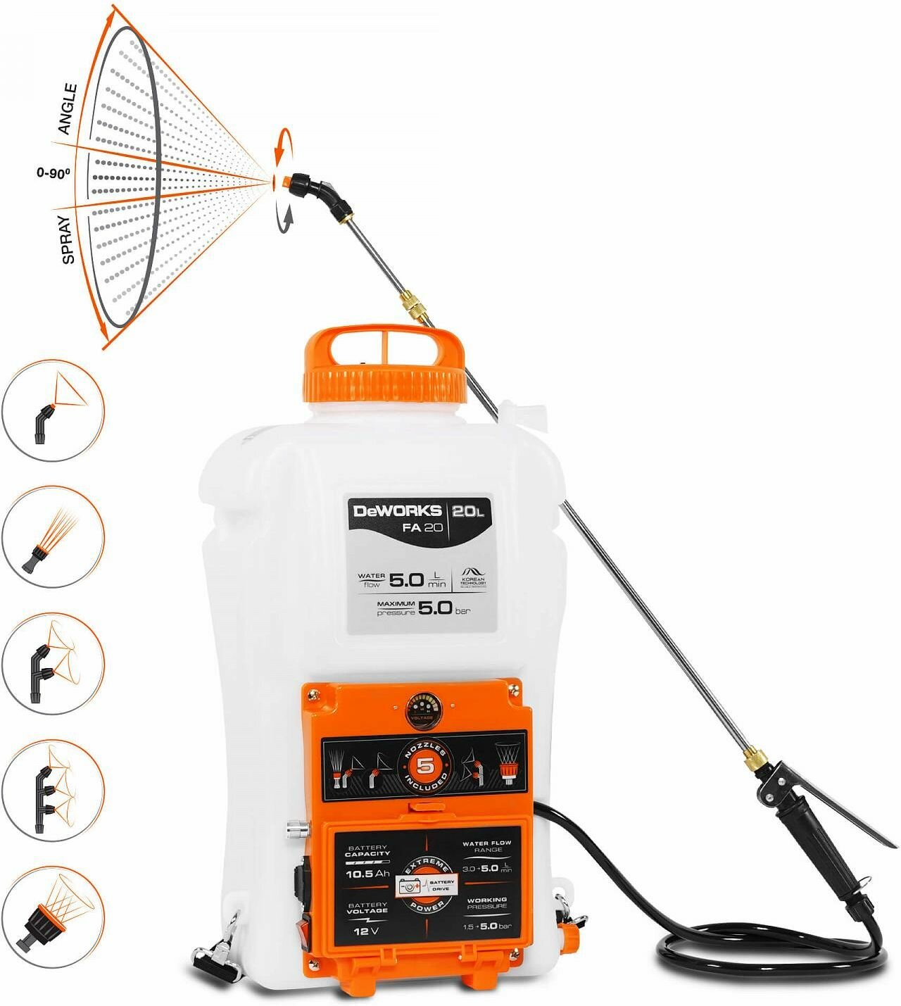 Опрыскиватель аккумуляторный DEWORKS FA 20, 20 л интересное: