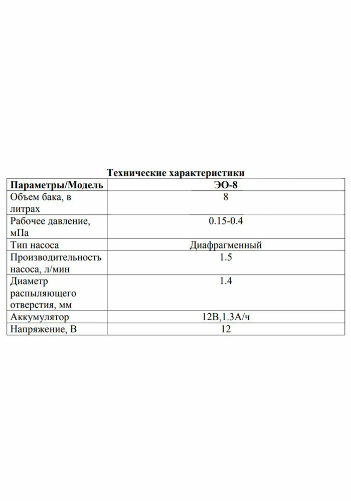 | Объем бака для распыления | 8 л |