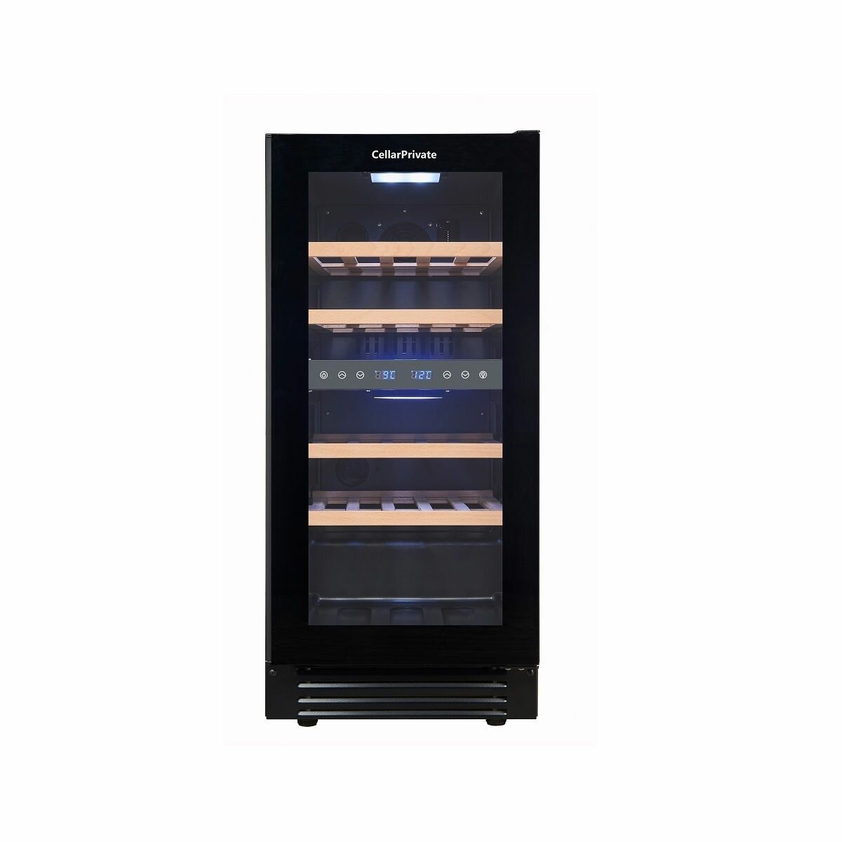 Винный шкаф Cellar Private CP027-2TBH, встраиваемый, двухтемпературный, 27бут, черный.