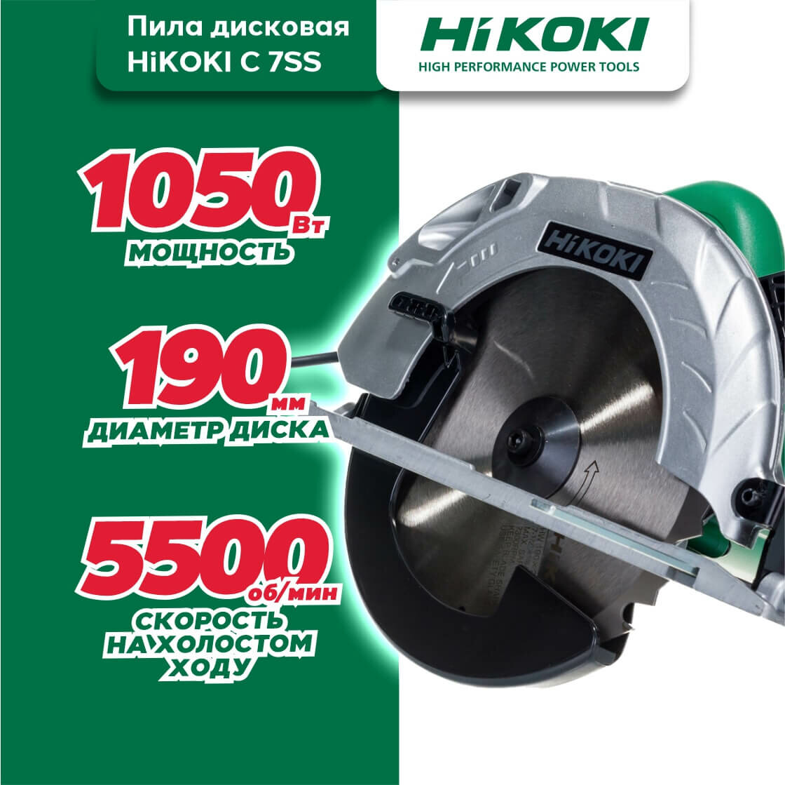 Дисковая пила HIKOKI C7SS, 1050 Вт, зеленый