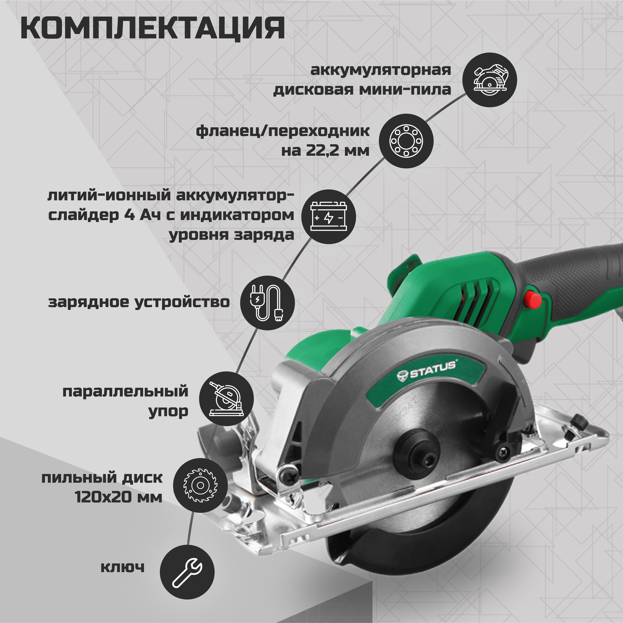 Пила дисковая аккумуляторная STATUS CP-125, 1 акк.4Ah и з.у. в комплекте