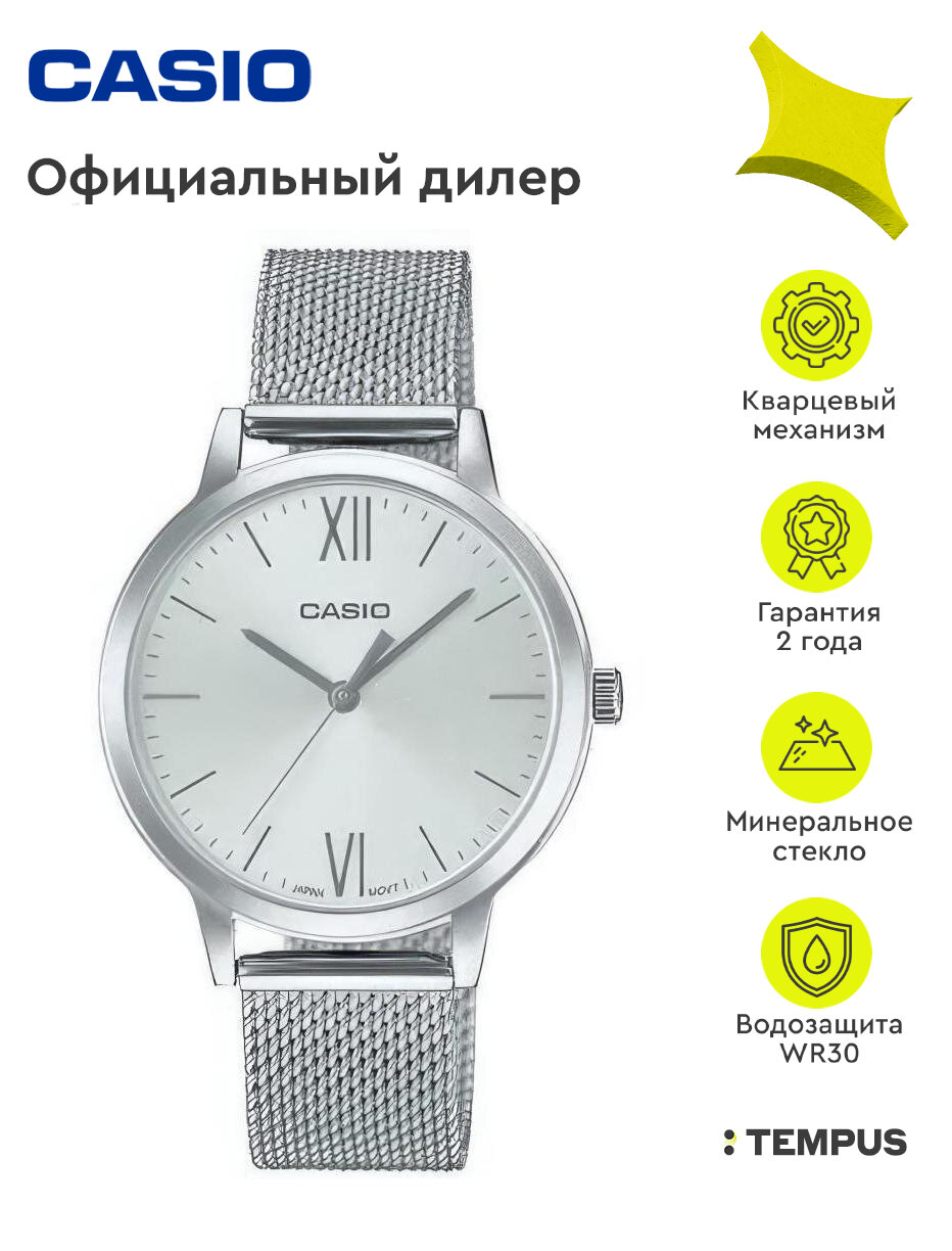 LTP-E157M-7A Casio наручные часы кварцевые WR30 (3 атм) женские серебряный минеральное стекло