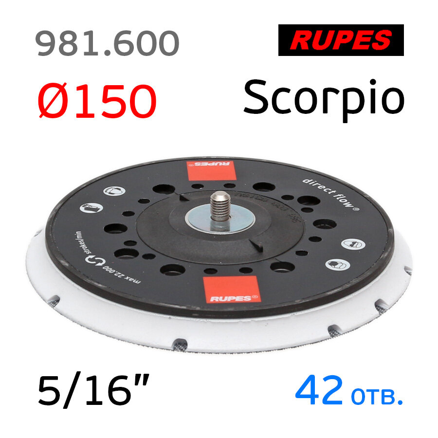 Подошва Rupes 981.600 (150мм; 5/16"; 42отв) Low Profile Multihole с центральным винтом интересное: