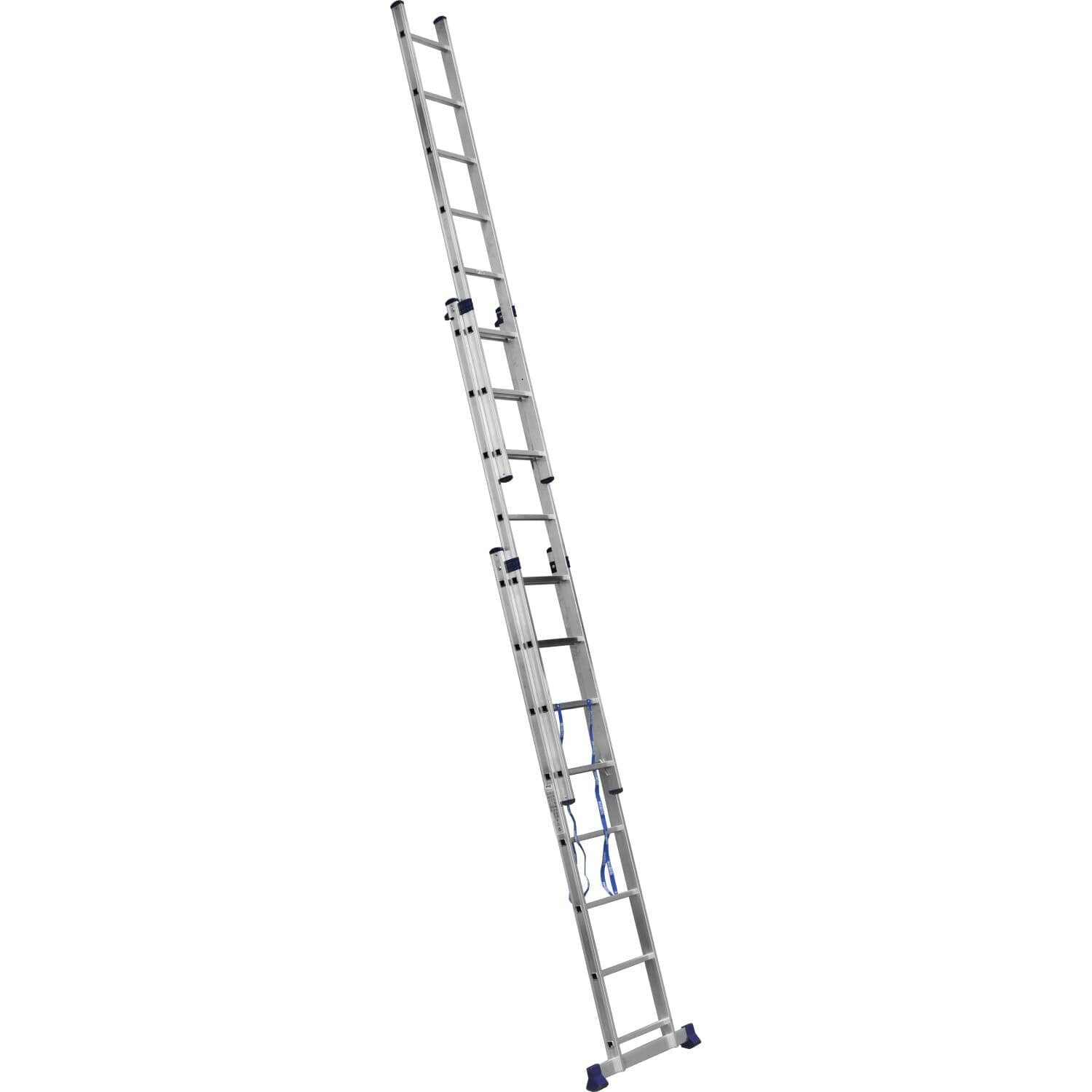 Трехсекционная лестница СИБИН, 8 ступеней, со стабилизатором, алюминиевая