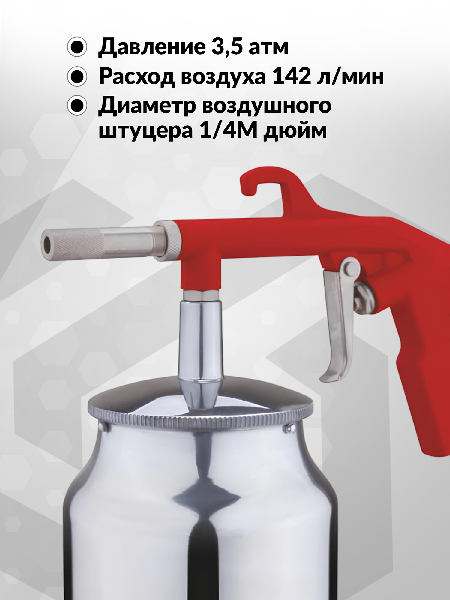 Пневмопистолет пескоструйный с бачком Elitech 0704.013900, 142л/мин, 3.5бар (арт. 186343) №1194