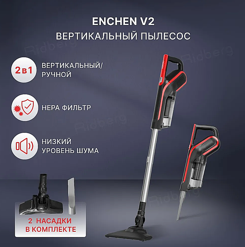 Ручной вертикальный пылесос Enchen Vacuum Cleaner V2 (Black/Red) DX700/DX700S / Ручной пылесос с контейнером для сухой уборки дома и мебели, 2 насадки в комплекте, черный интересное: