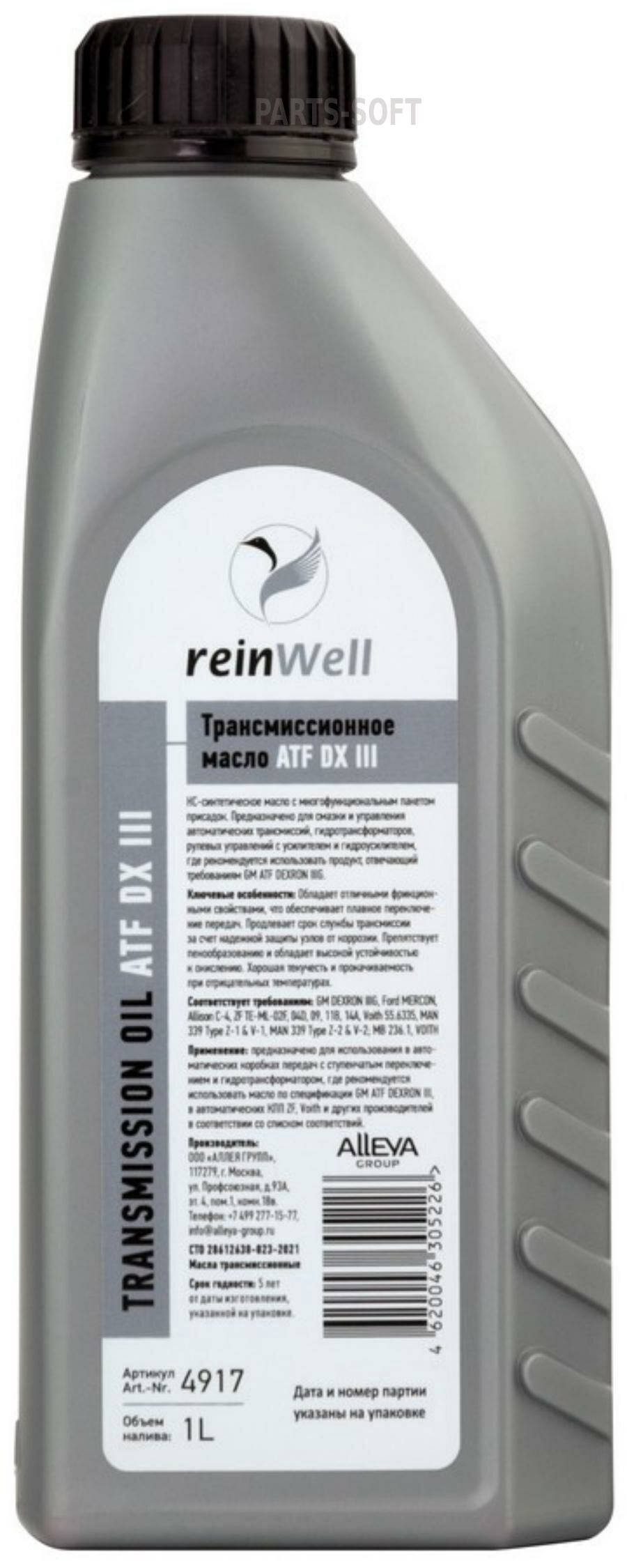 4917 ReinWell Трансмиссионное масло ATF DX III (1л)