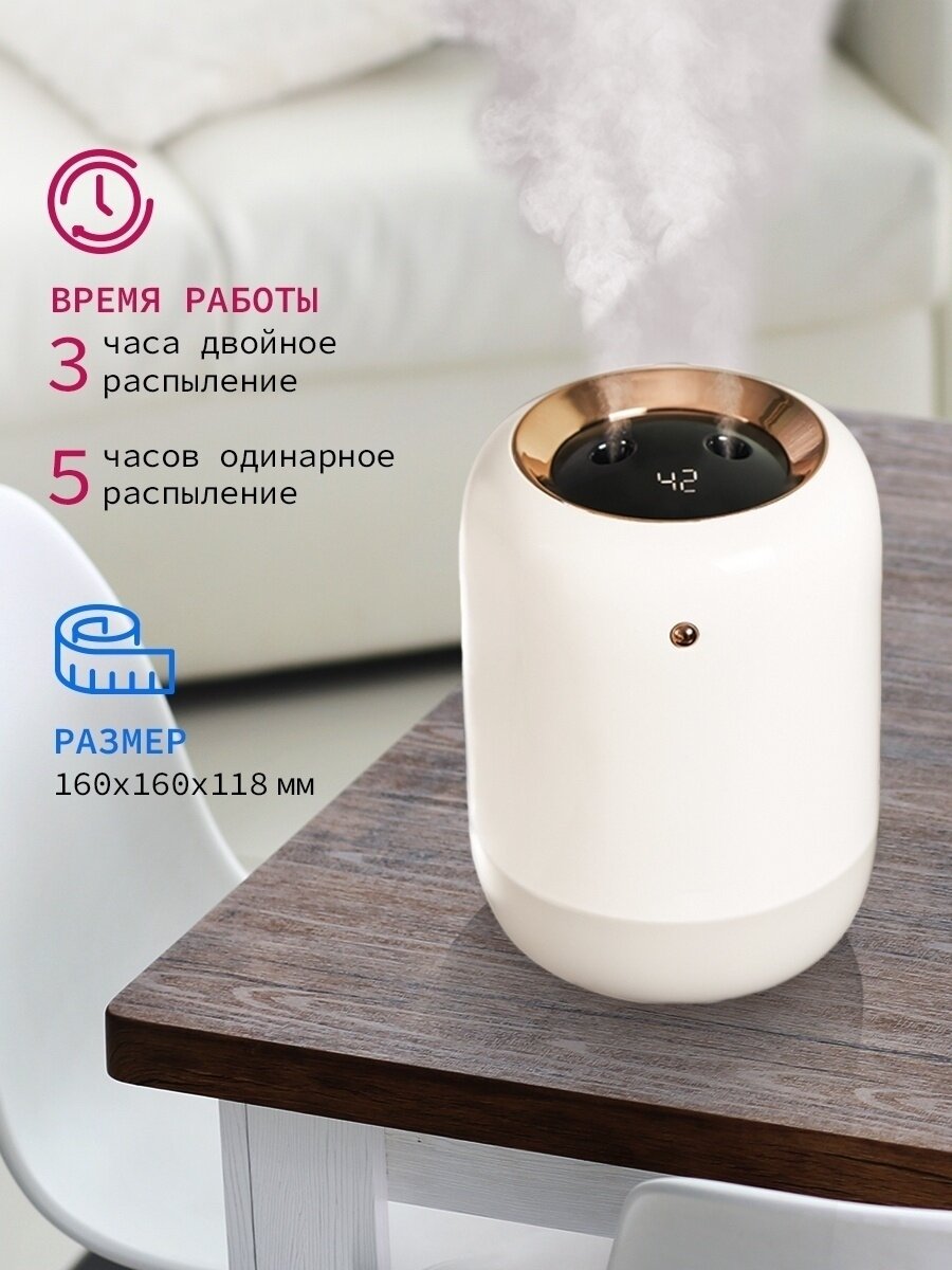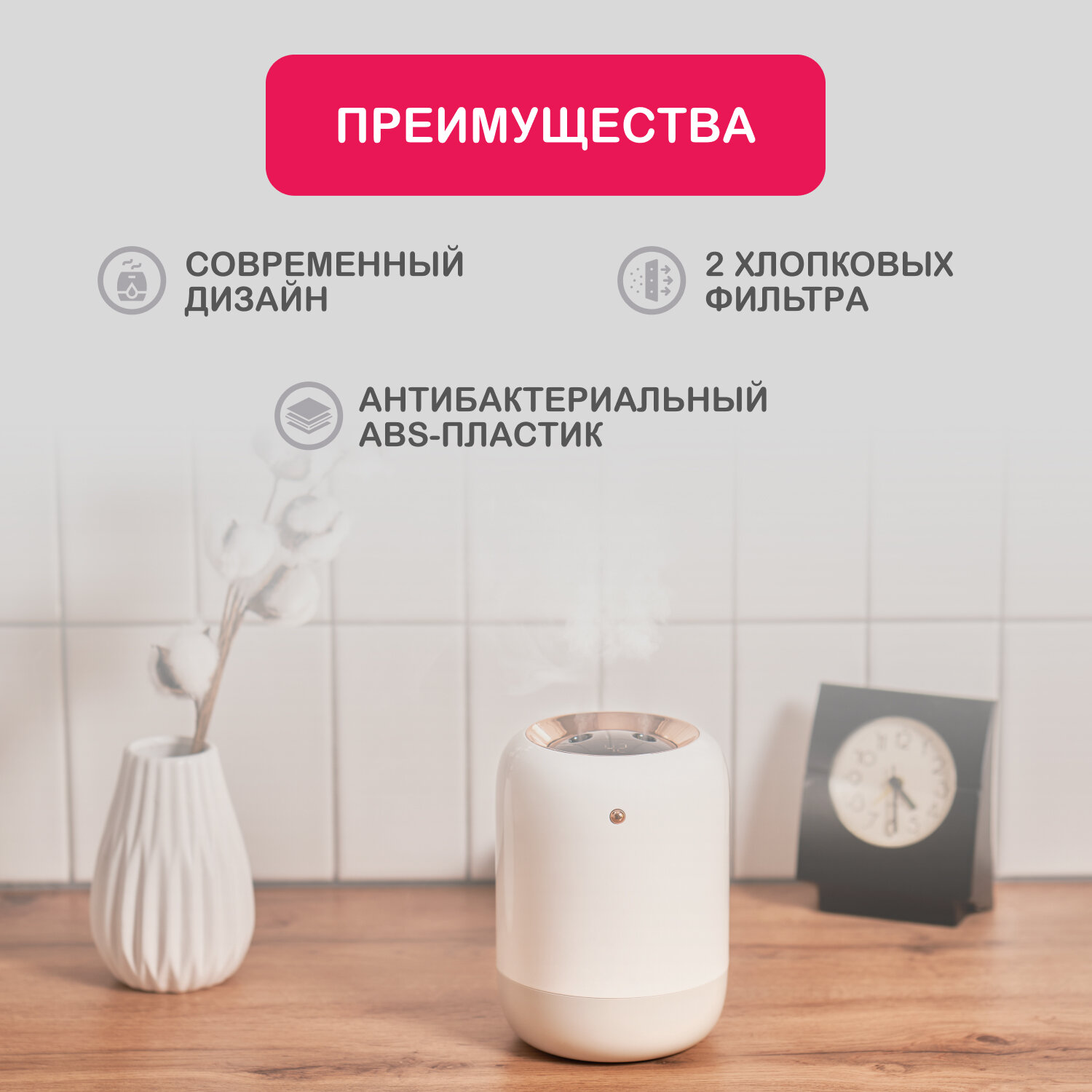 Увлажнитель воздуха USB из антибактериального АБС-пластика с хлопковыми фильтрами и таймером, резервуар 1 литр