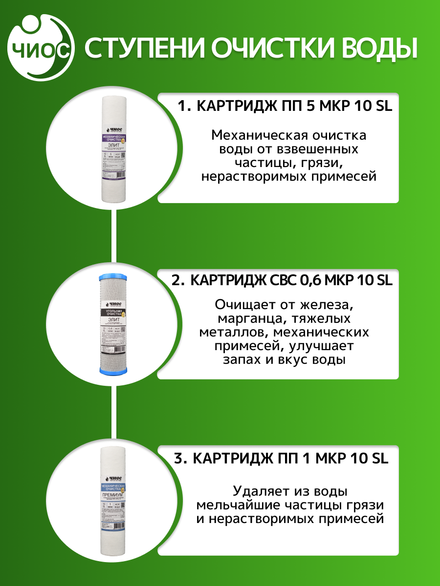 Комплект картриджей для фильтра под мойку №5 Стандарт (ПП5Х + СВС0,6Х + ПП1Х) для всех фильтров стандарта 10" SL интересное: