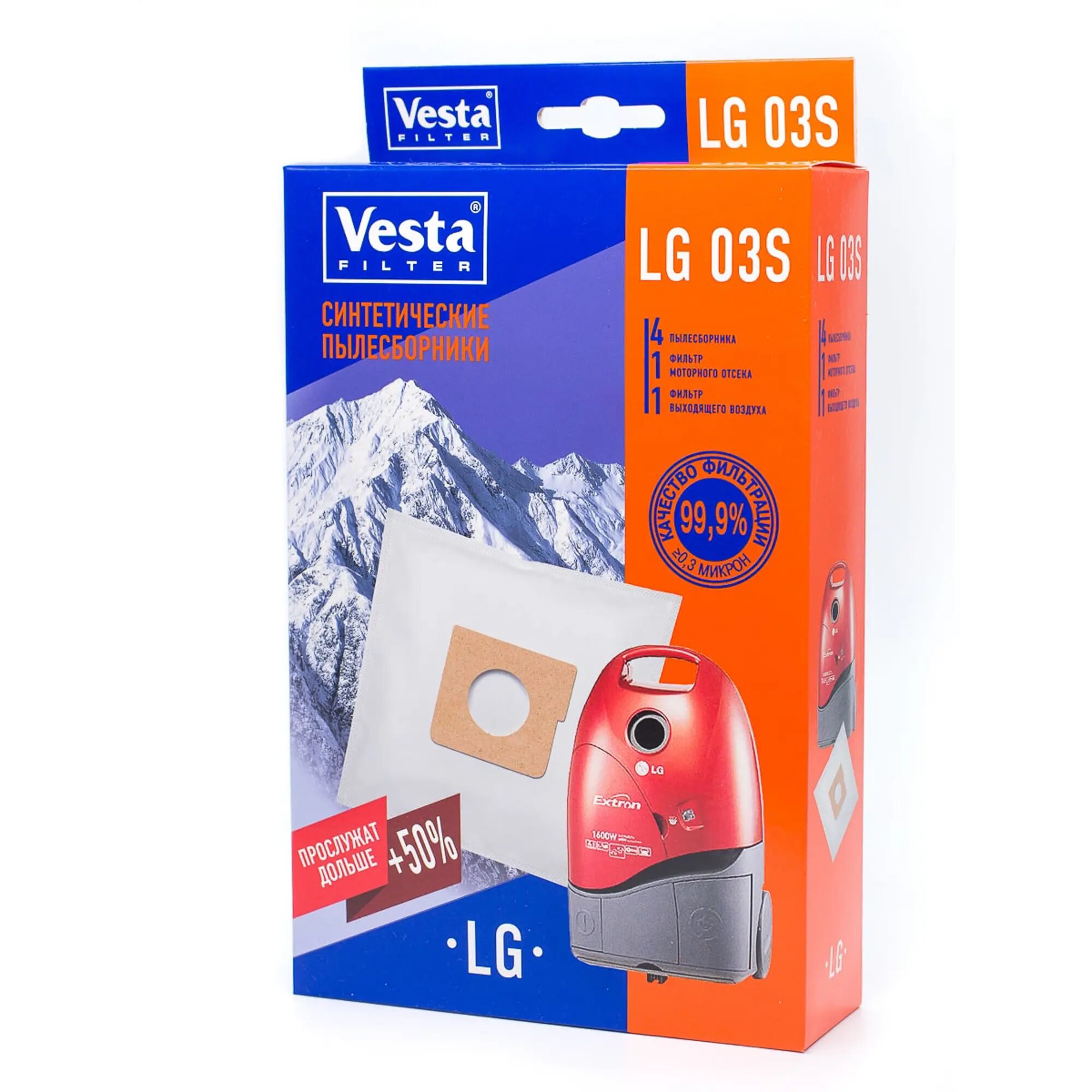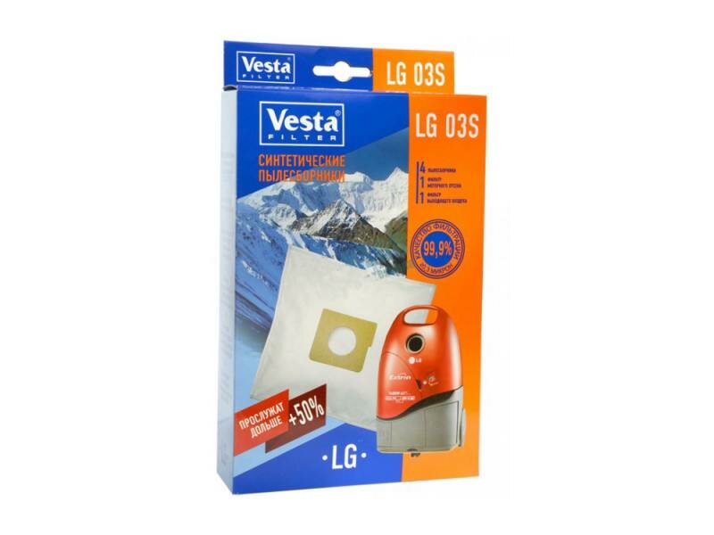 Пылесборники синтетические VESTA FILTER LG 03S для пылесоса LG 4 штуки+2 фильтра, белый