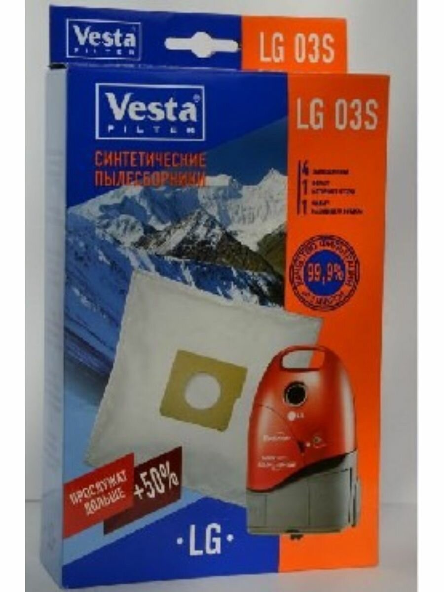 Vesta filter LG03S комплект мешков-пылесборников синтетических (4шт+ 2 фильтра) для пылесоса LG