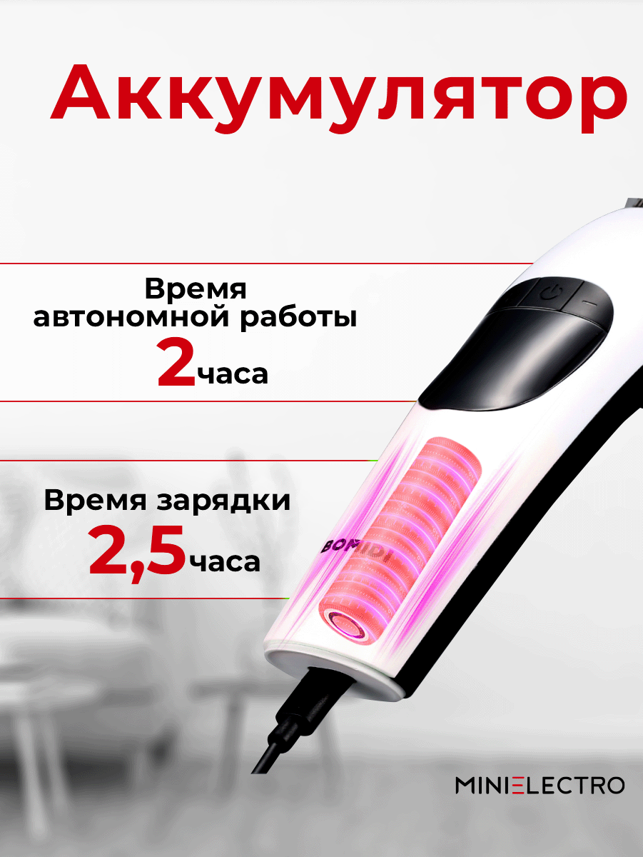| Плюсы: | Керамические лезвия, несколько режимов работы, есть экран, аккумуляторная, универсальное гнездо для зарядки type-c, 5 насадок в комплекте, удобно лежит в руке. |