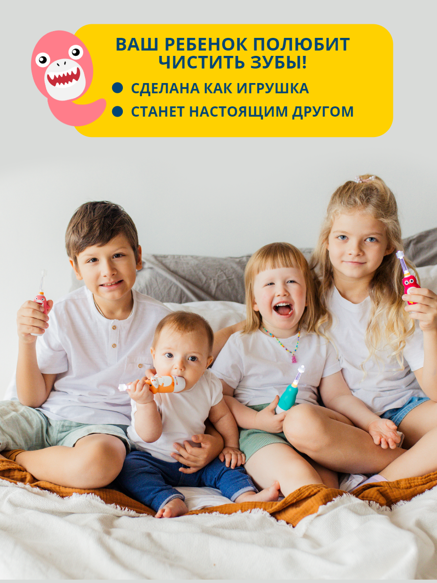 Купить Электрическая звуковая зубная щётка MEGA TEN для детей "Акуленок"