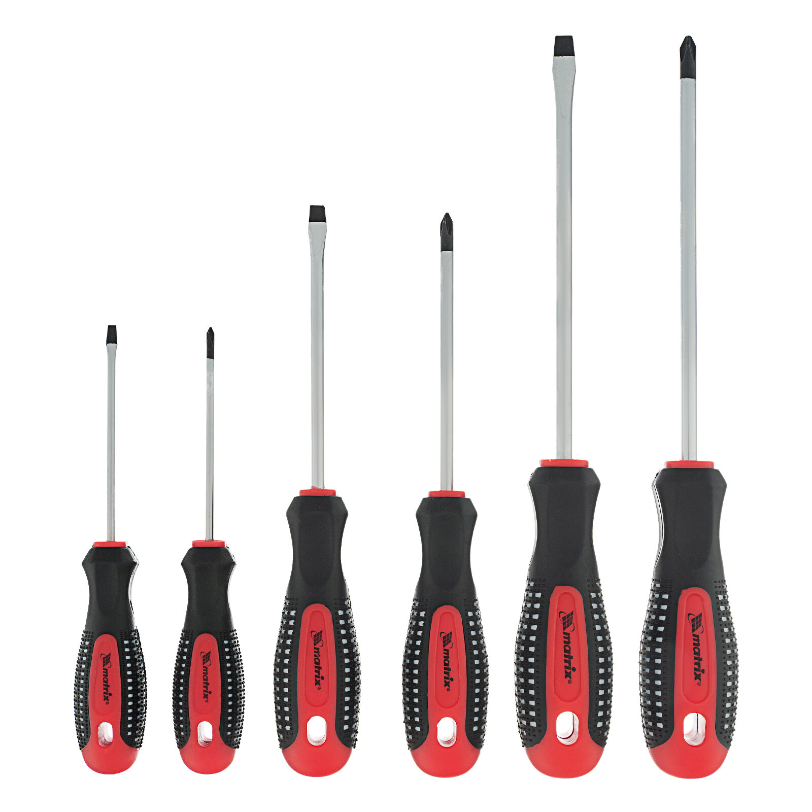 Набор профессиональных отверток Matrix Fusion CrV, 3-компонентная рукоятка antislip, 6 шт 13351