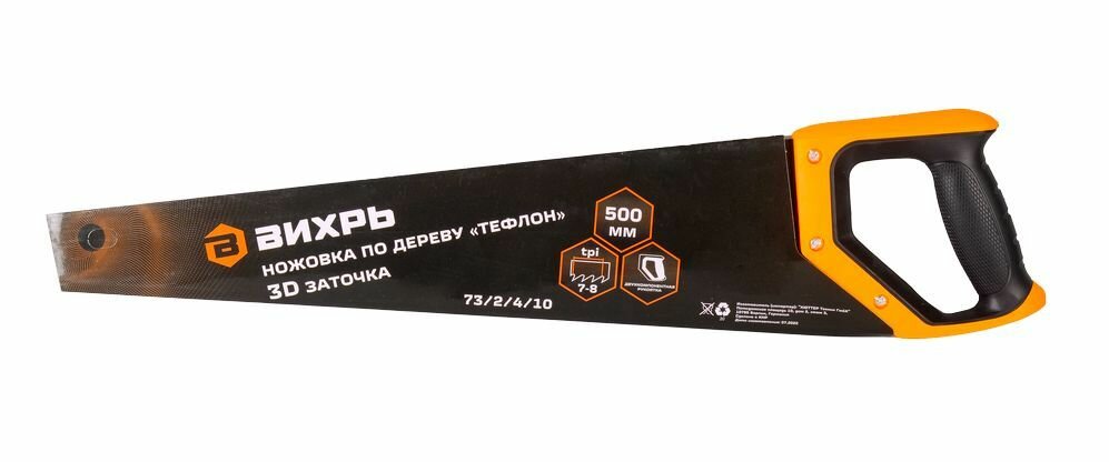 Ножовка 500мм "Тефлон" 3D заточка 2 комп.рукоятка Вихрь 73/2/4/10, вихрь 732410 (1 шт.)