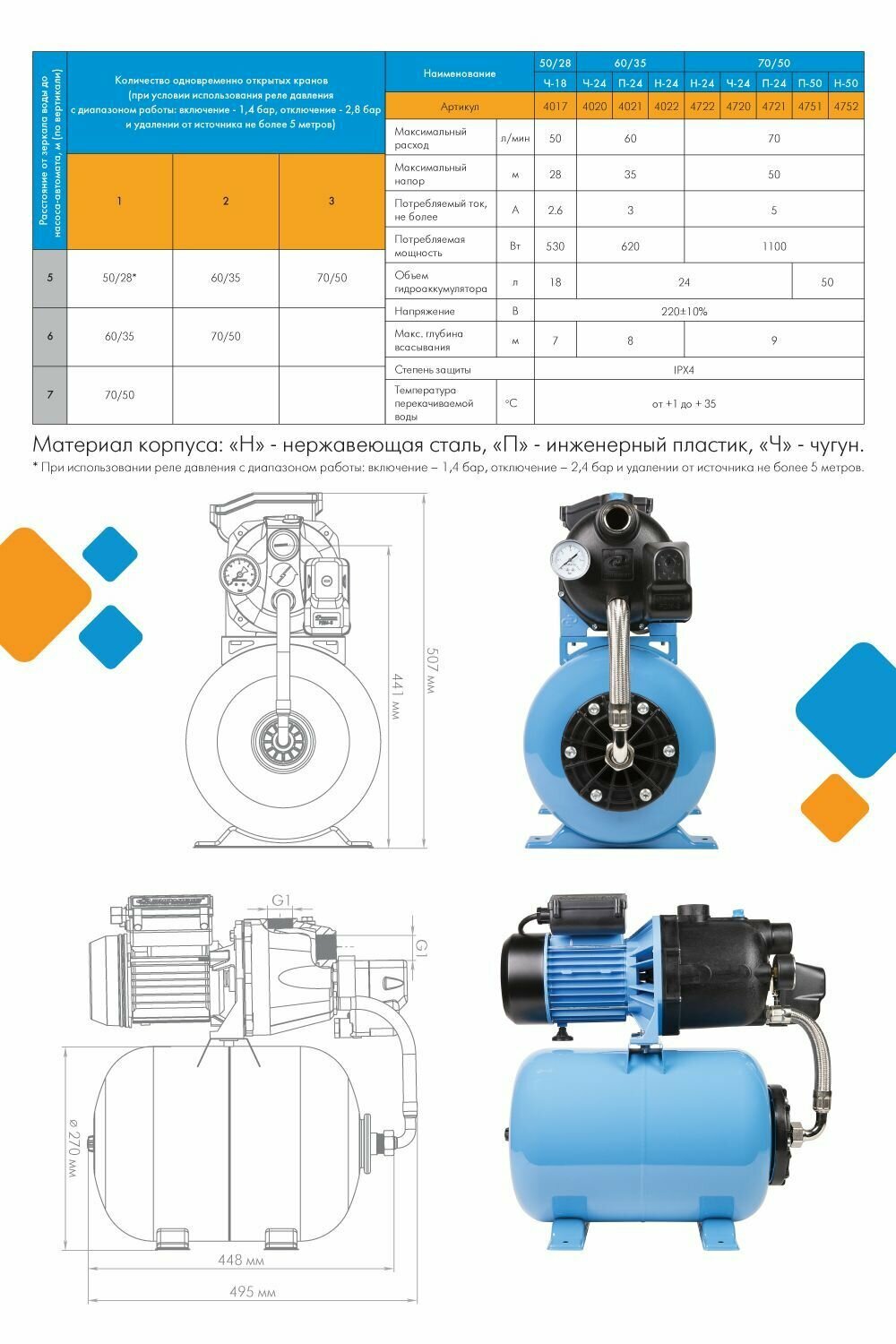 Ну и надо ставить защиту от сухого пуска (в этой модели ее нет). Странный вариант комплектаций у этого производителя, на станциях без расширительного бака, на некоторых моделях защита от сухого пуска есть. |