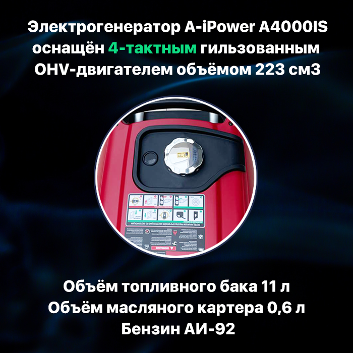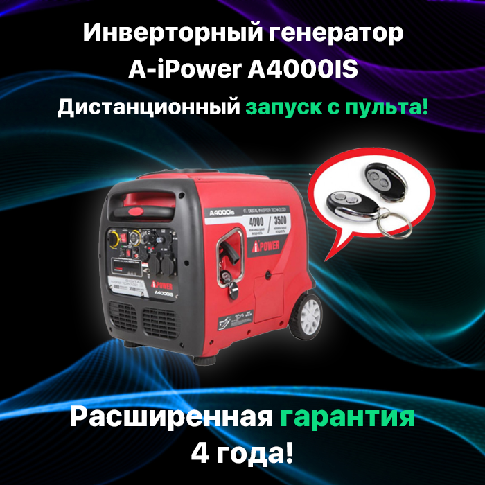 Генератор инверторный бензиновый А-iPower А4000iS 4 кВт, ручной старт/электростартер + пульт ДУ, бензогенератор, электростанция 51кг интересное:
