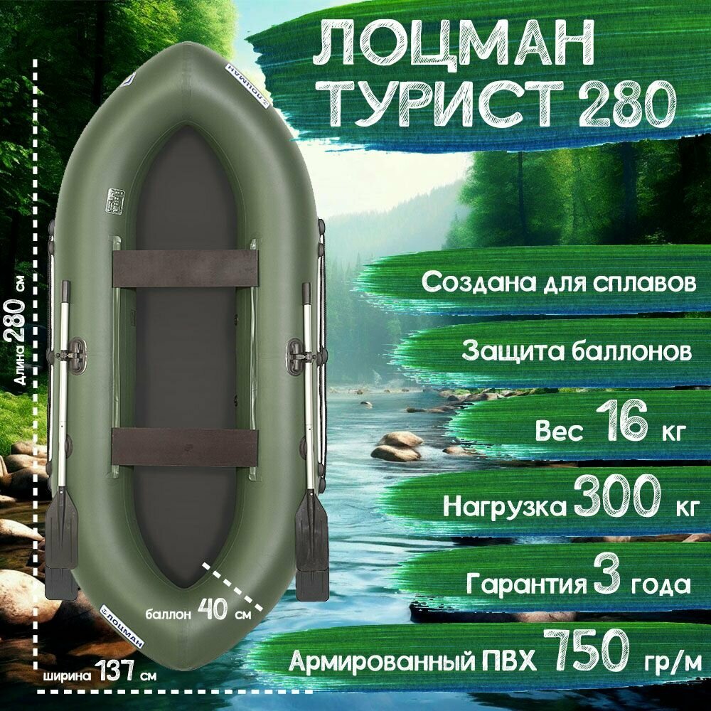 Лодка ПВХ гребная для сплавов Лоцман Турист 280