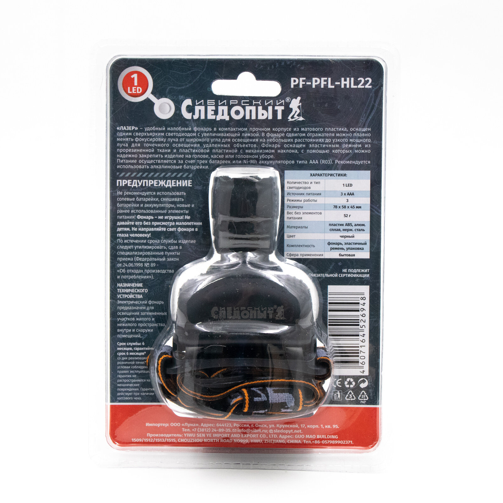 Фонарь налобный 1 LED PF-PFL-HL22 интересное: