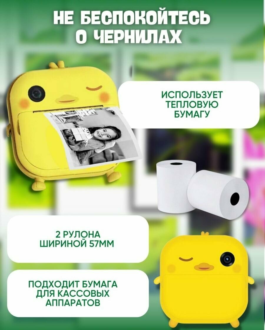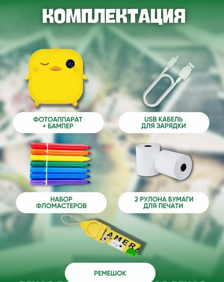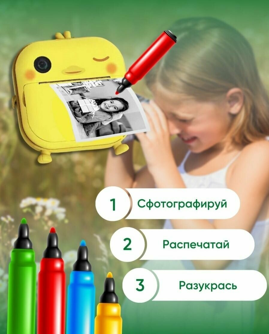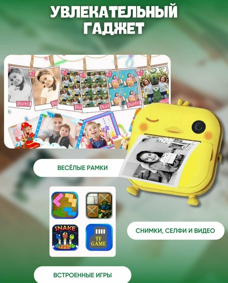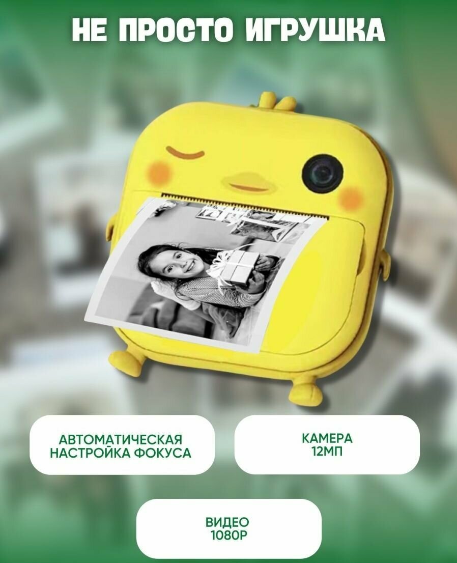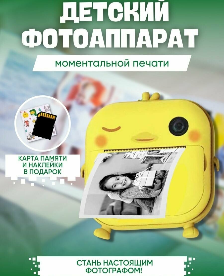 Детский фотоаппарат с мгновенной печатью фото Print Camera "Утёнок"+CD карта 32GB (желтая) интересное: