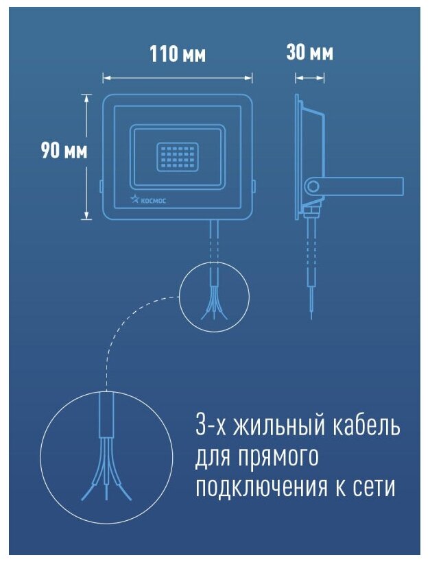 Прожектор светодиодный космос K-PR5-LED-20, 20 Вт, 6500K, холодный белый интересное: