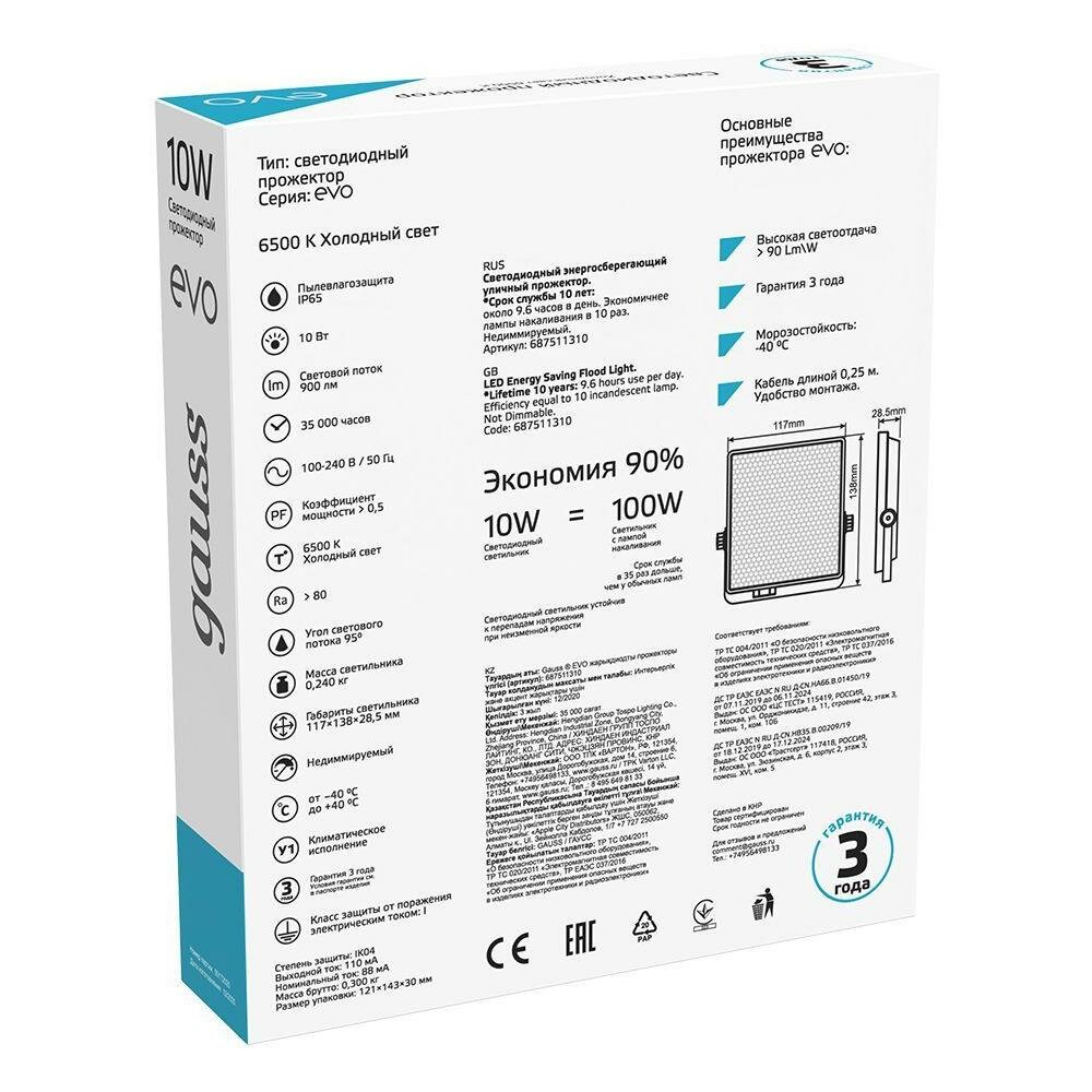 Купить Прожектор уличный GAUSS EVO, 10Вт [687511310]