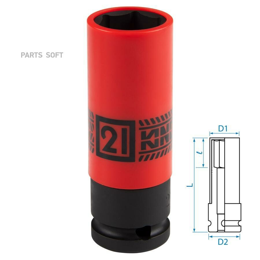 KING TONY 494521M головка торцевая! ударная глубокая 1/2'', 21 мм, тонкостенная, пластиковая защита KING TONY\