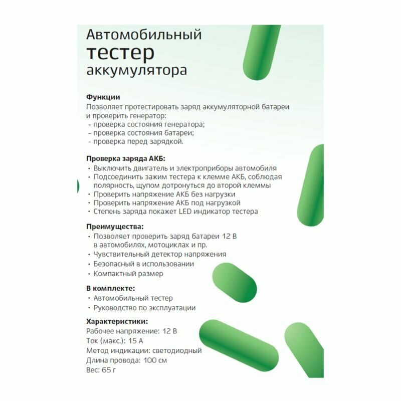 тестер DUWI DIY аккумулятора 15А провод 1м черный