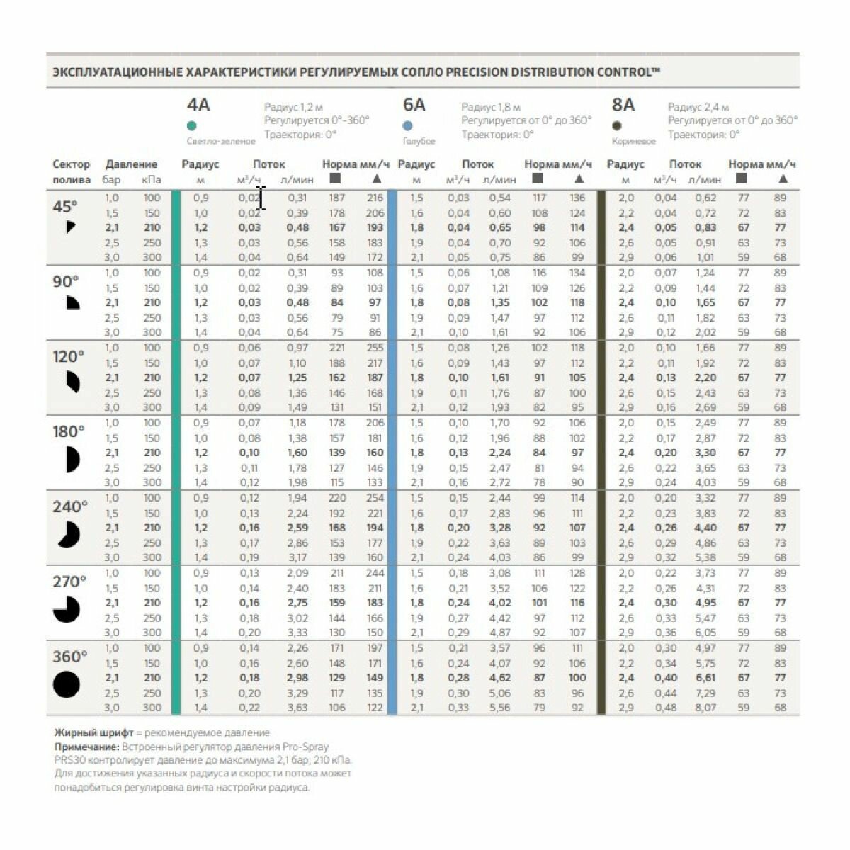 | Дополнительная информация | траектория 0°; регулируется сектор полива от 0° до 360°; радиус полива от 0.9 м до 1.4 м; расход воды от 0.31 до 3.63 л/мин; рекомендуемое давление 2.1 бар с радиусом полива 1.2 м |