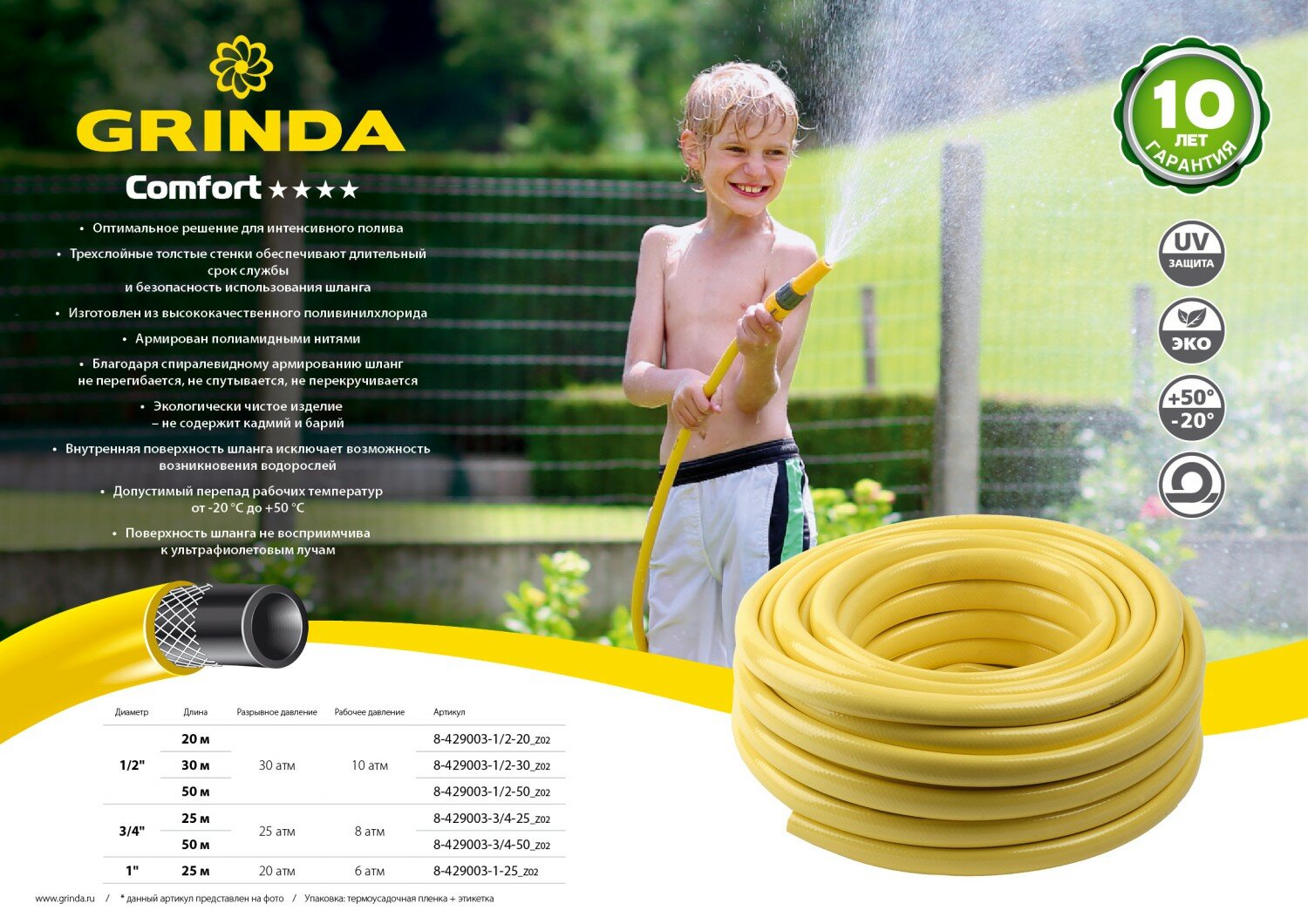 GRINDA COMFORT 3/4″ 25 м, 25 атм, трёхслойный, армированный, Поливочный шланг (8-429003-3/4-25)