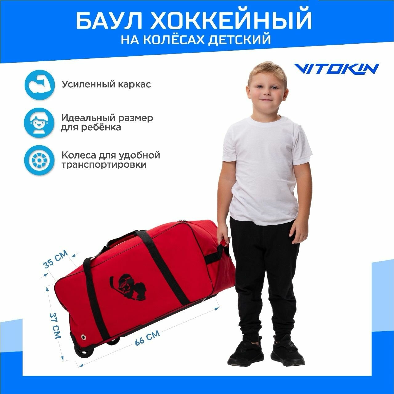 Баул детский хоккейный на колесах VITOKIN JUNIOR, сумка хоккейная на колесах, цвет красный