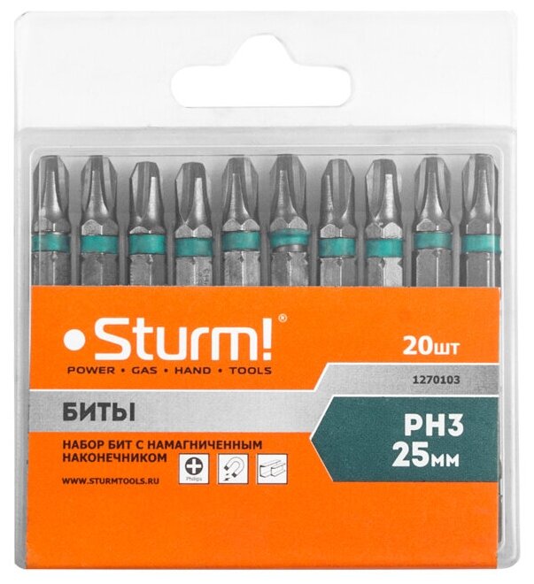 Набор бит PH3 Sturm "1270103" 25 мм, 20 шт