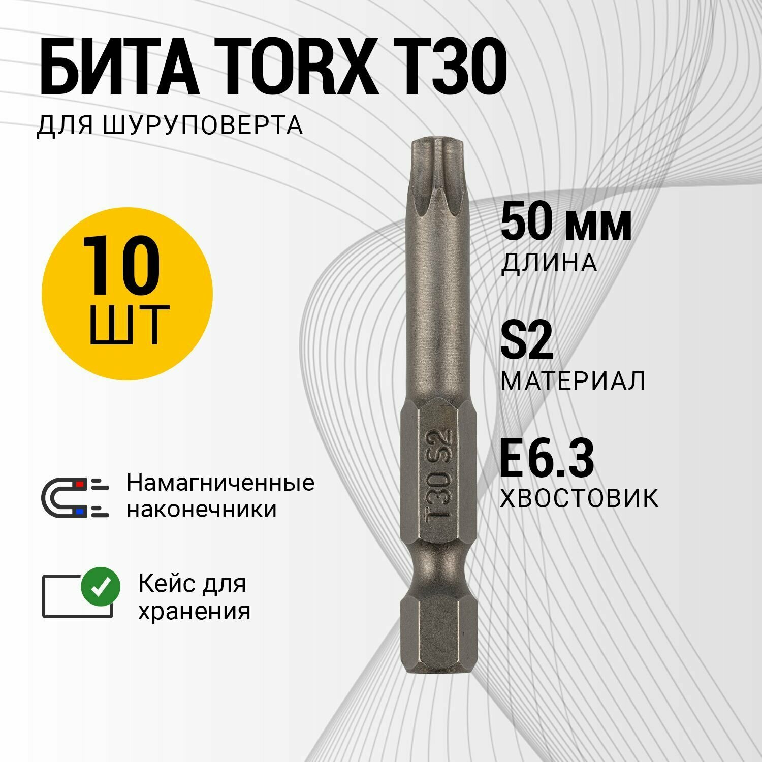 Шестигранные биты REXANT Torx T-30х50 мм для шуруповертов из закаленной стали S2, в упаковке 10 шт