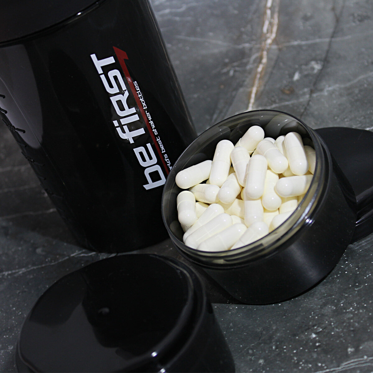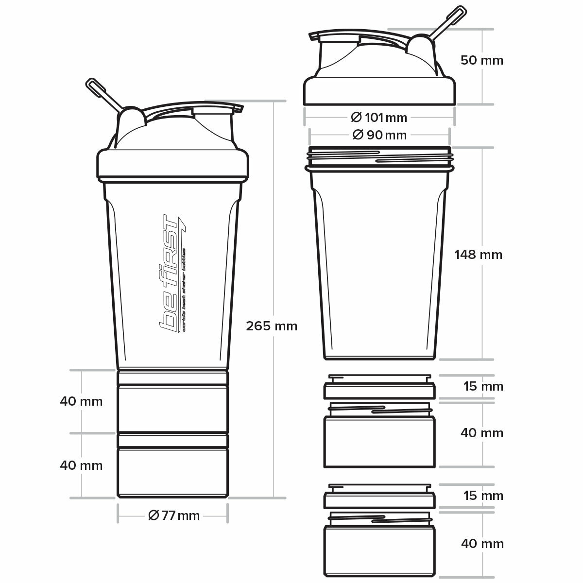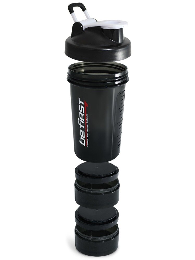 Шейкер Be First 700 мл с шариком, держателем и 2 контейнерами, тритан, черный (TS 1386-T-black)