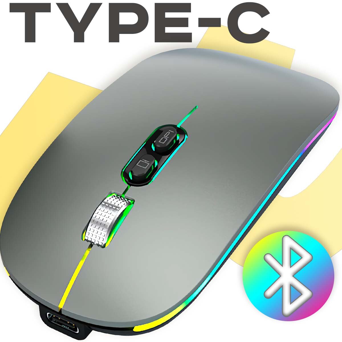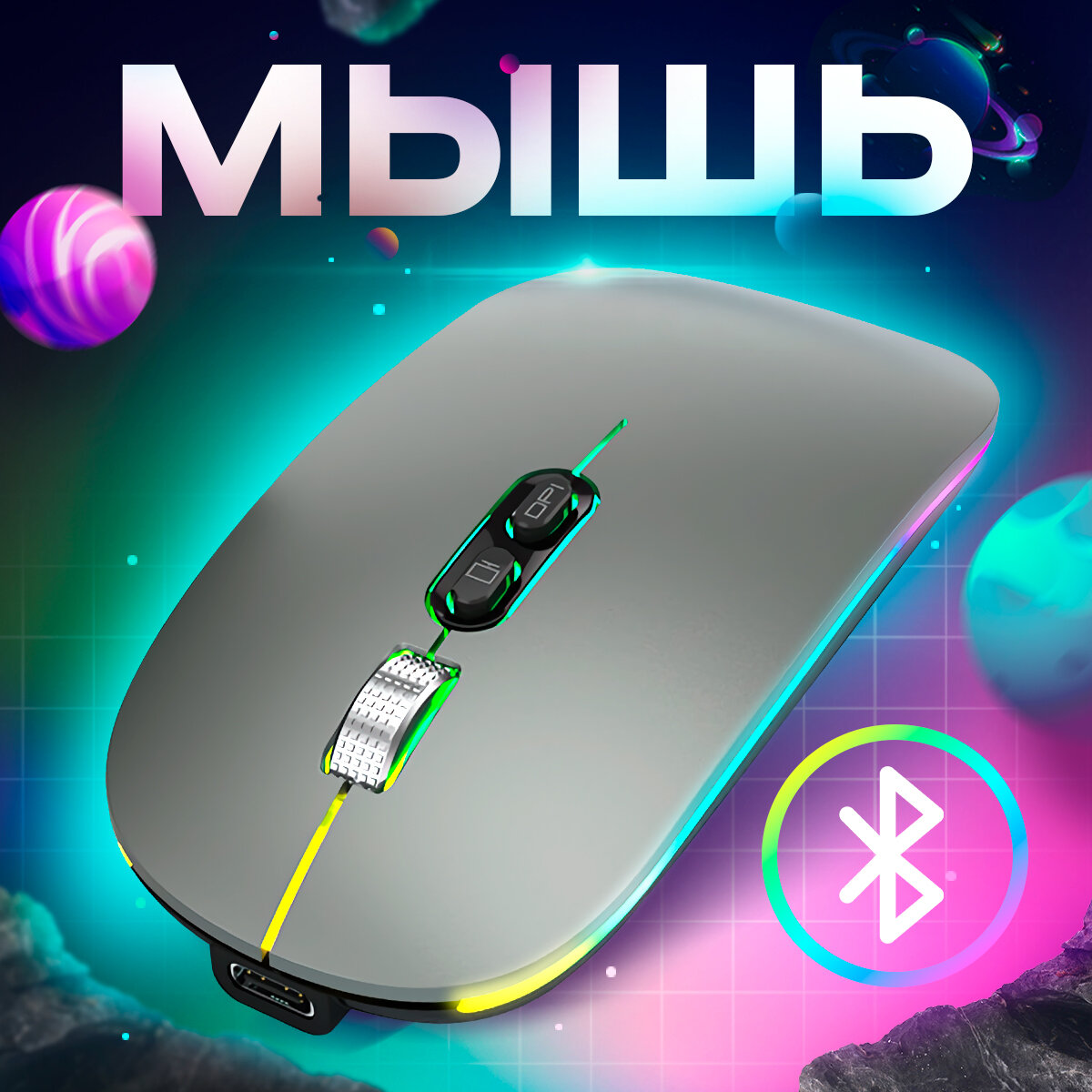 Мышь беспроводная М103, Bluetooth 5.1 + Nano USB, Зарядка Type-C Компьютерная мышка с RGB подсветкой, бесшумная мышка с Аккумулятором, цвет серый