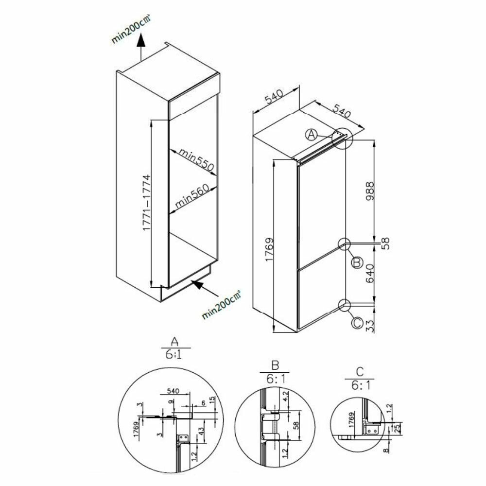 Встраиваемый холодильник Homsair FB177NFFW